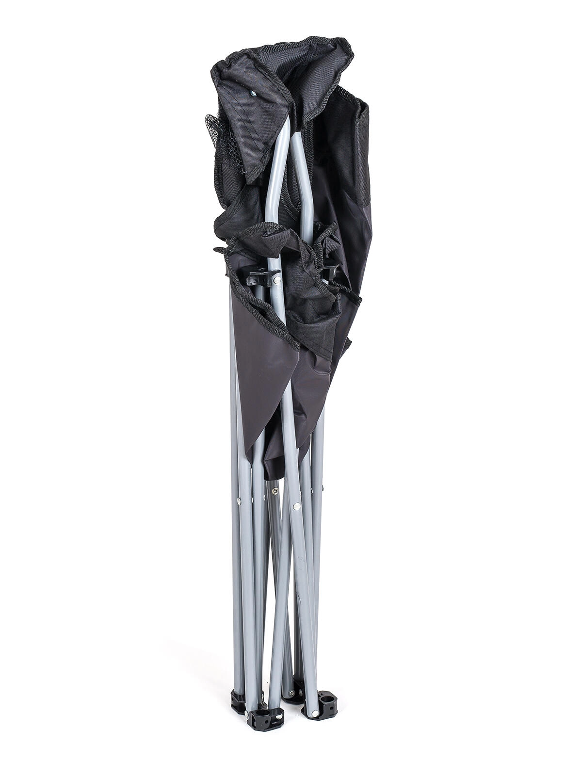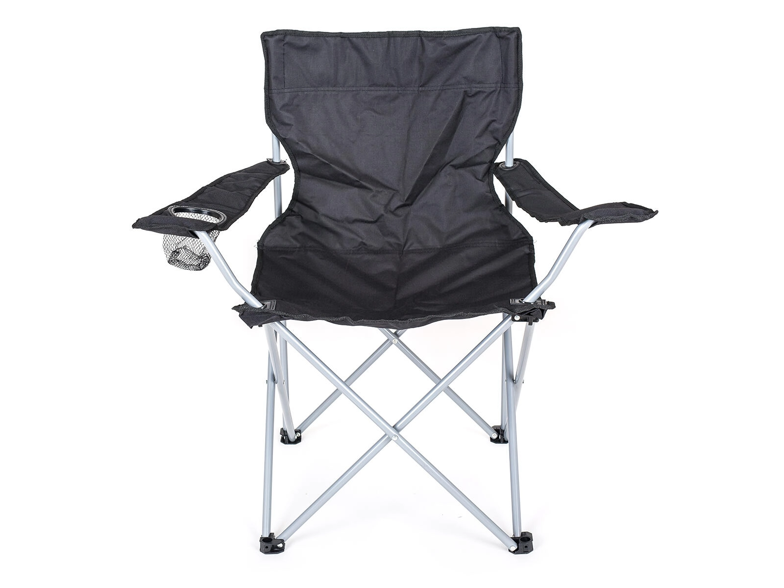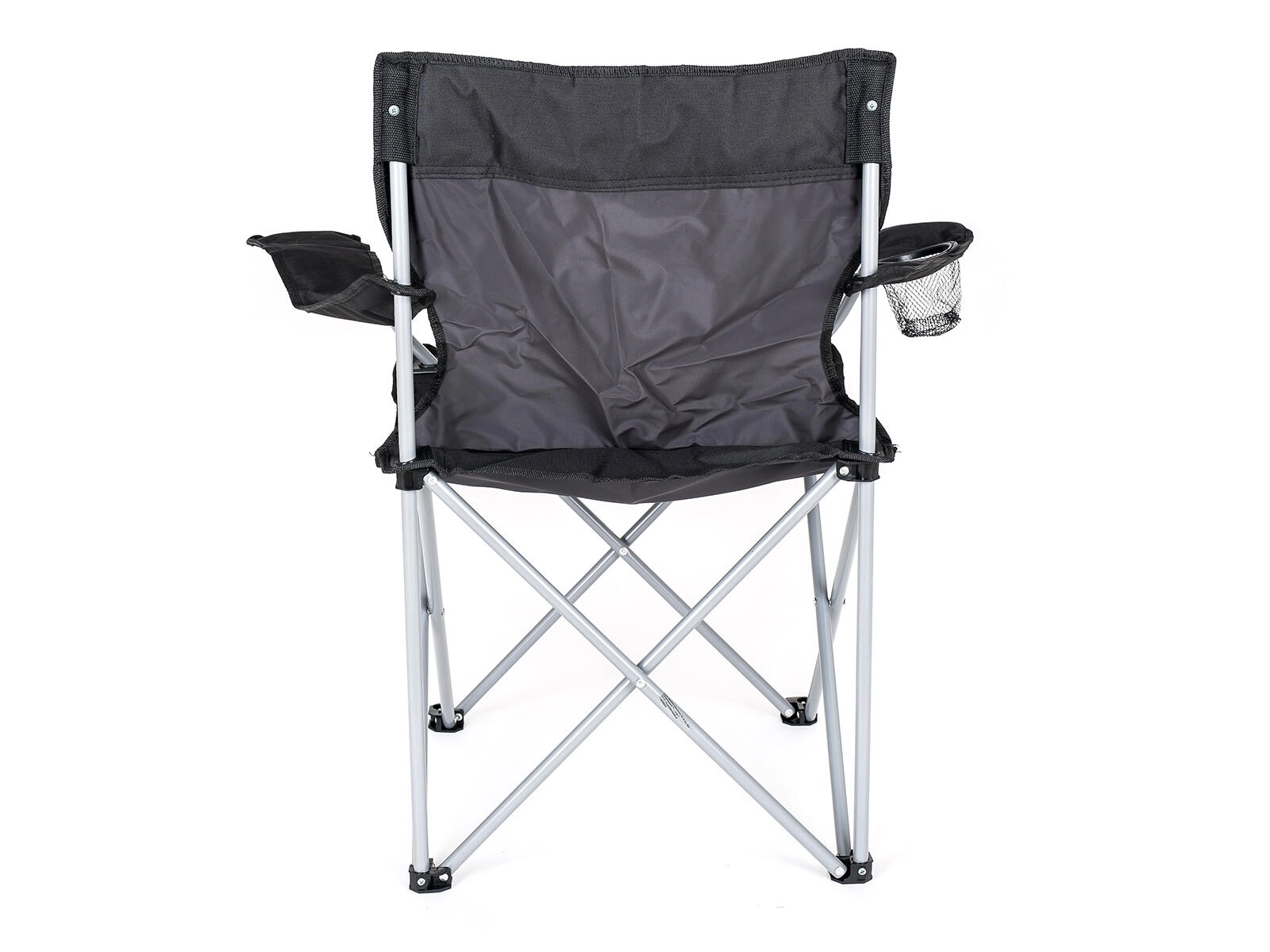 Le fauteuil possède des accoudoirs confortables, dont l’un est équipé d’un porte-gobelet intégré. Grâce à ses dimensions compactes une fois plié, il se glisse facilement dans la housse de transport fournie et ne prend pas de place dans la voiture ni au garage.