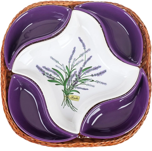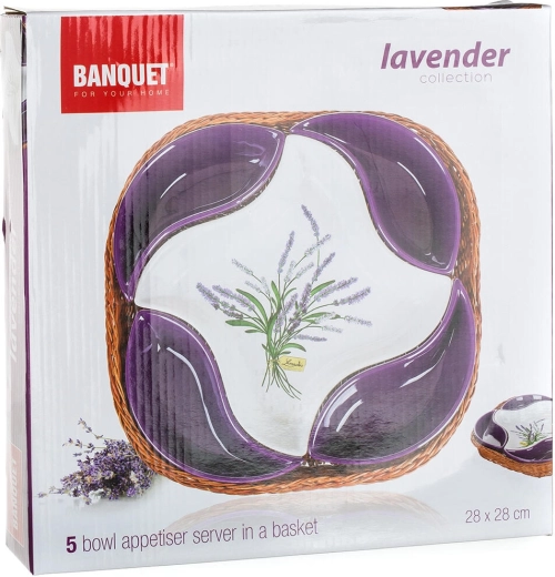 Set de bols en céramique LAVENDER dans un panier en osier, 5 pcs (28 × 28 cm)