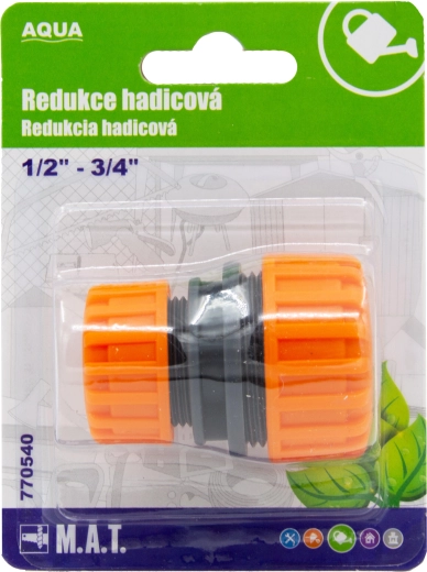Pratique réducteur de tuyaux AQUA 1/2" → 3/4" pour connecter facilement deux tuyaux de diamètres différents. Conception résistante en PP (polypropylène) garantissant une longue durée de vie et une étanchéité fiable dans les systèmes d’arrosage, au jardin et autour de la maison.