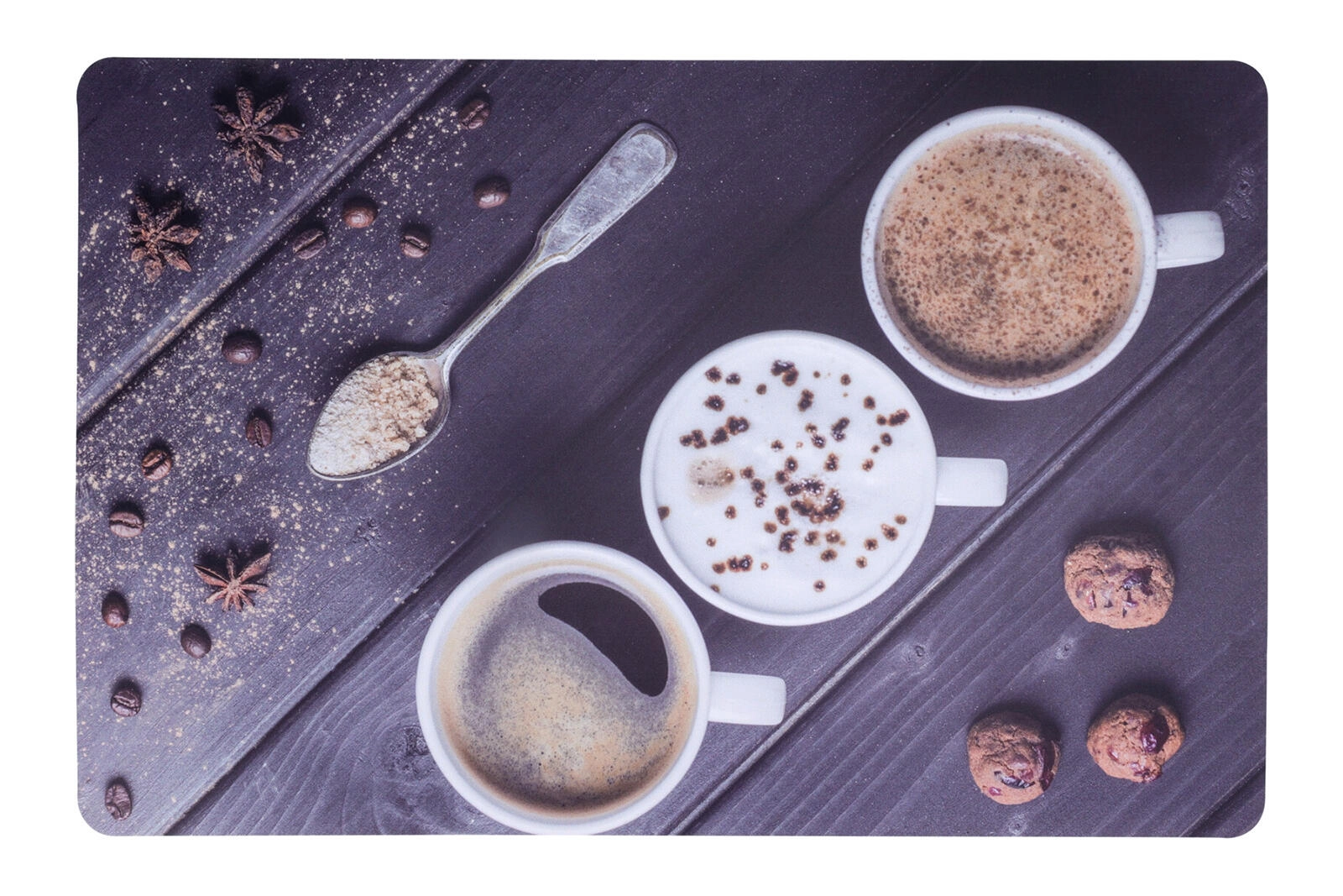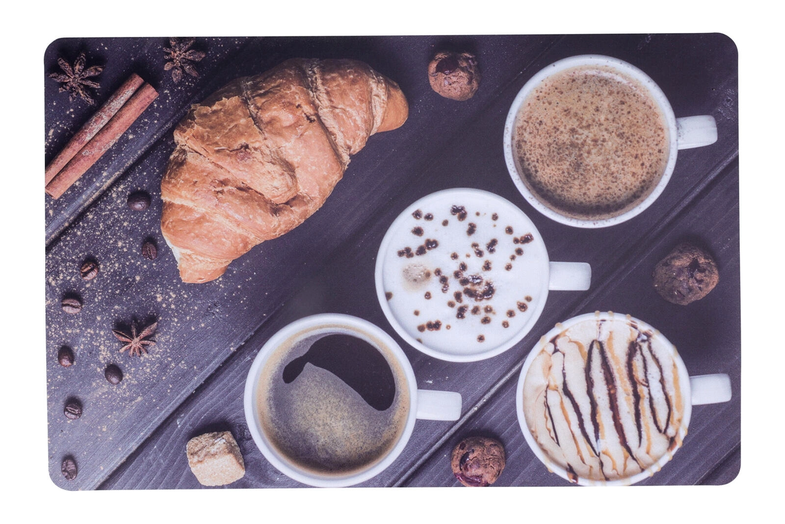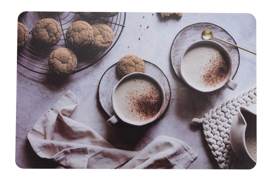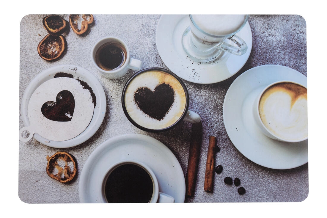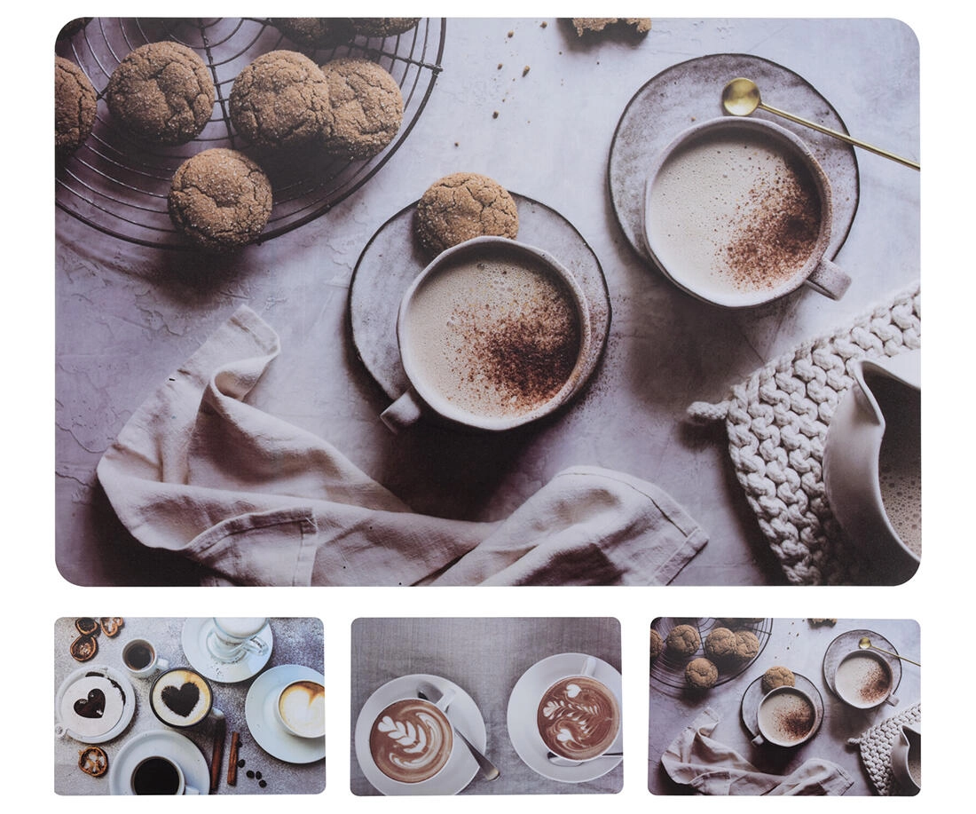 Un set de table stylé au motif Café protège la table contre la saleté et les rayures. Plastique PP léger et résistant, format pratique 43,5 × 28,5 cm, assortiment de 4 décors pour s’accorder facilement à l’intérieur.