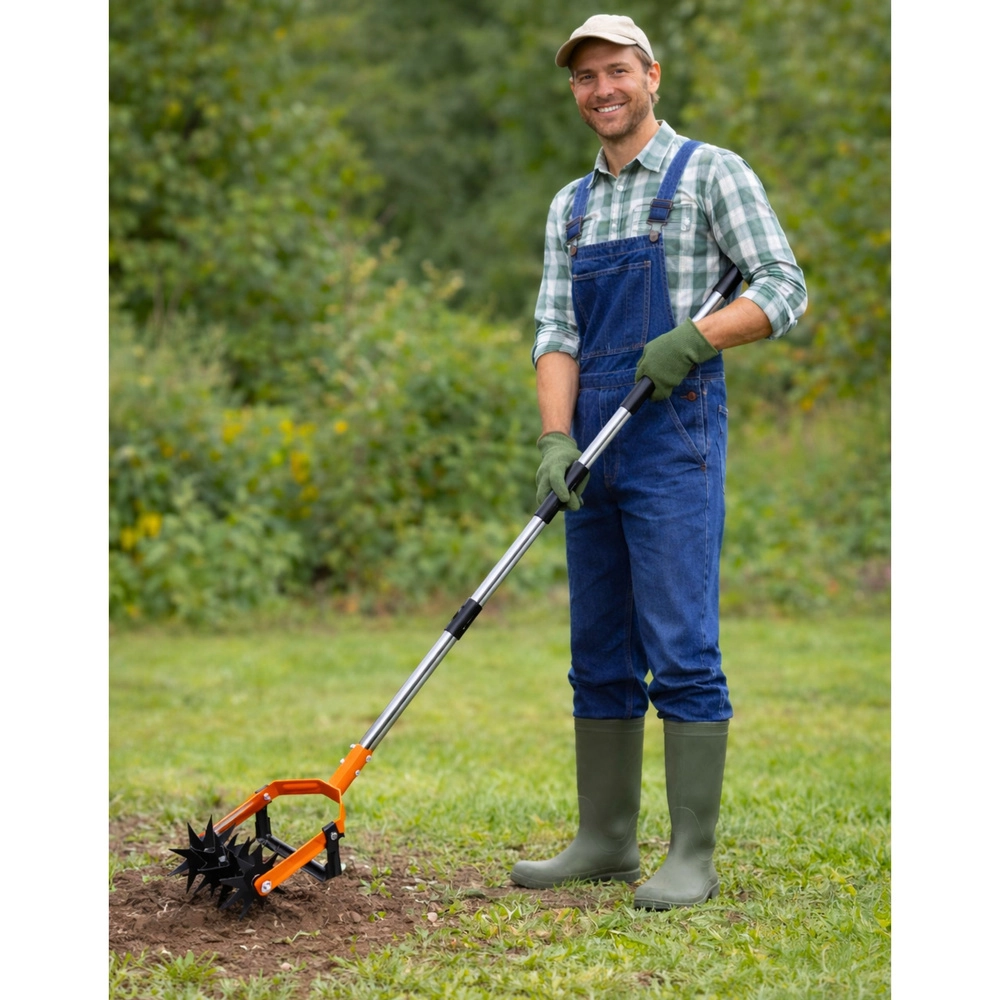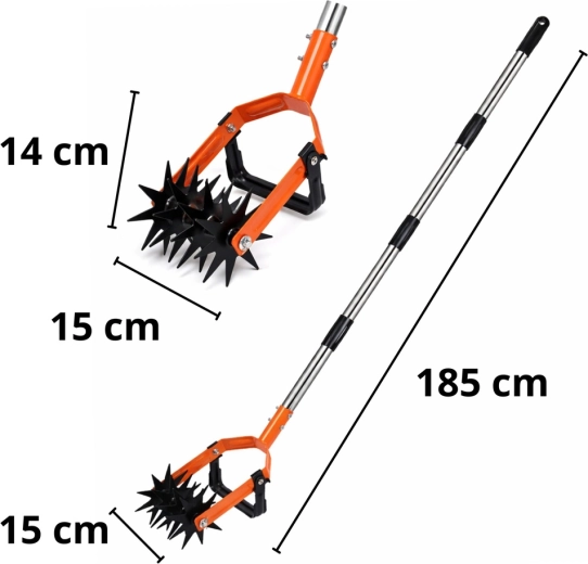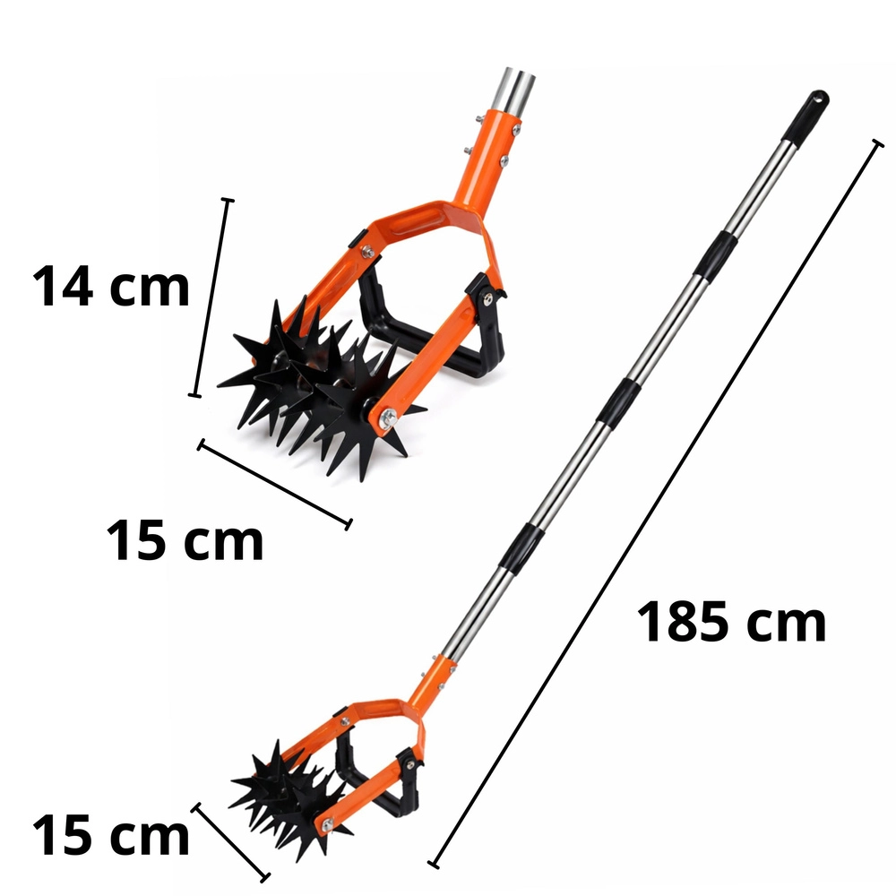 Pratique cultivateur manuel avec tête rotative et dents en étoile qui désherbe et ameublit le sol sans effort. Grâce au manche télescopique, vous réglez facilement la longueur pour travailler confortablement sans vous pencher. La structure en acier robuste garantit une longue durée de vie et des performances fiables sur les plates-bandes, sous serre et sur la pelouse.