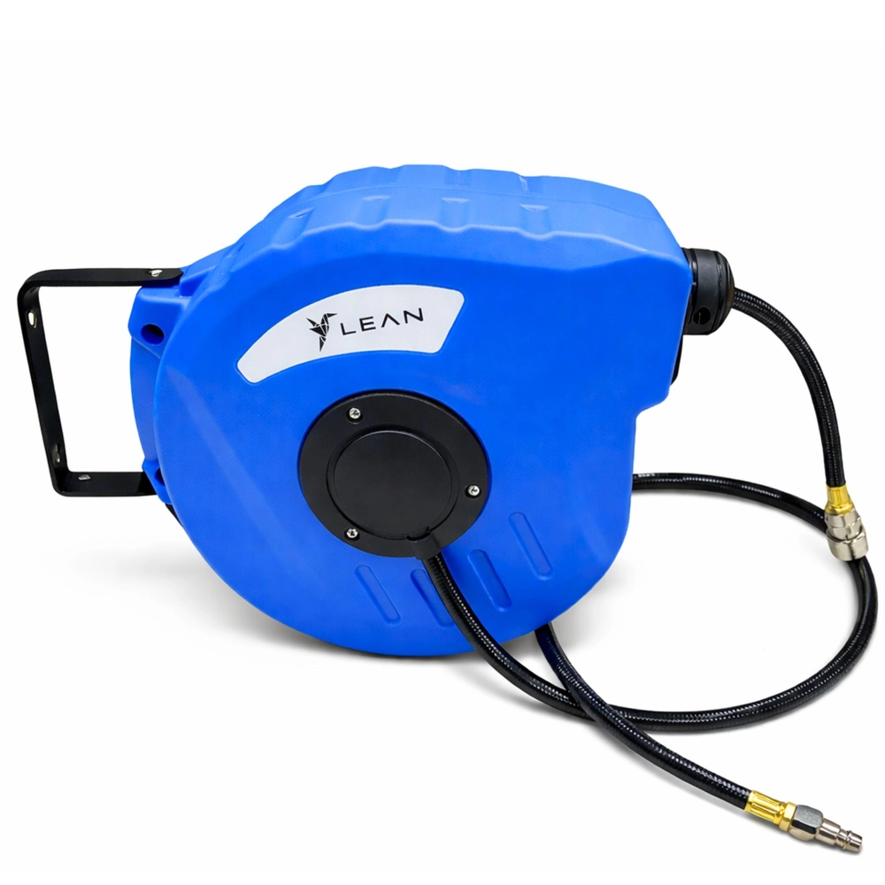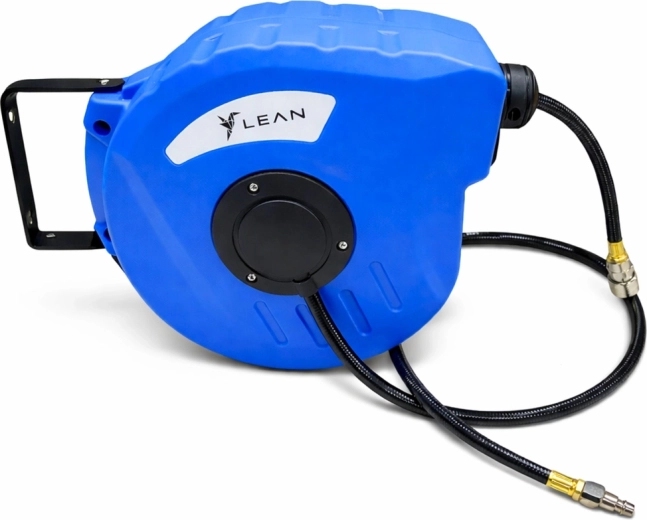L’enrouleur automatique pour tuyau pneumatique offre un poste de travail propre et organisé, sans tuyaux emmêlés. Le tuyau PVC résistant et flexible avec profil 8 × 12 mm assure un débit d’air ou de liquides fiable à une pression de service de 8 bar et supporte jusqu’à 24 bar en surcharge. Le mécanisme automatique intégré déroule le tuyau en douceur et, après usage, le réenroule en toute sécurité dans un boîtier fermé.