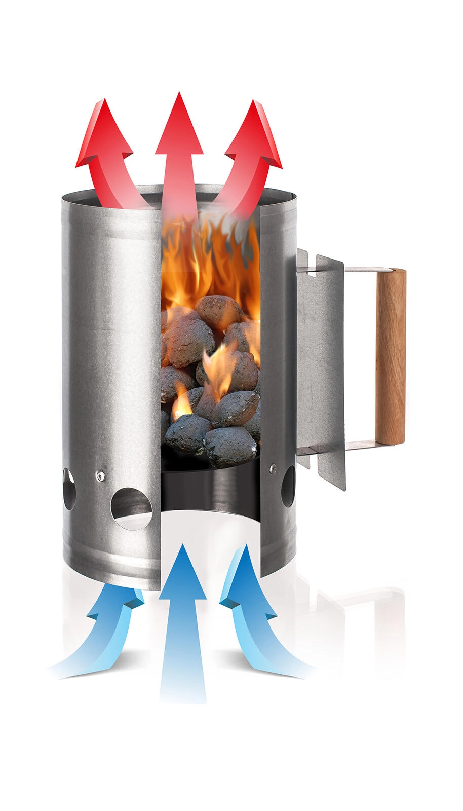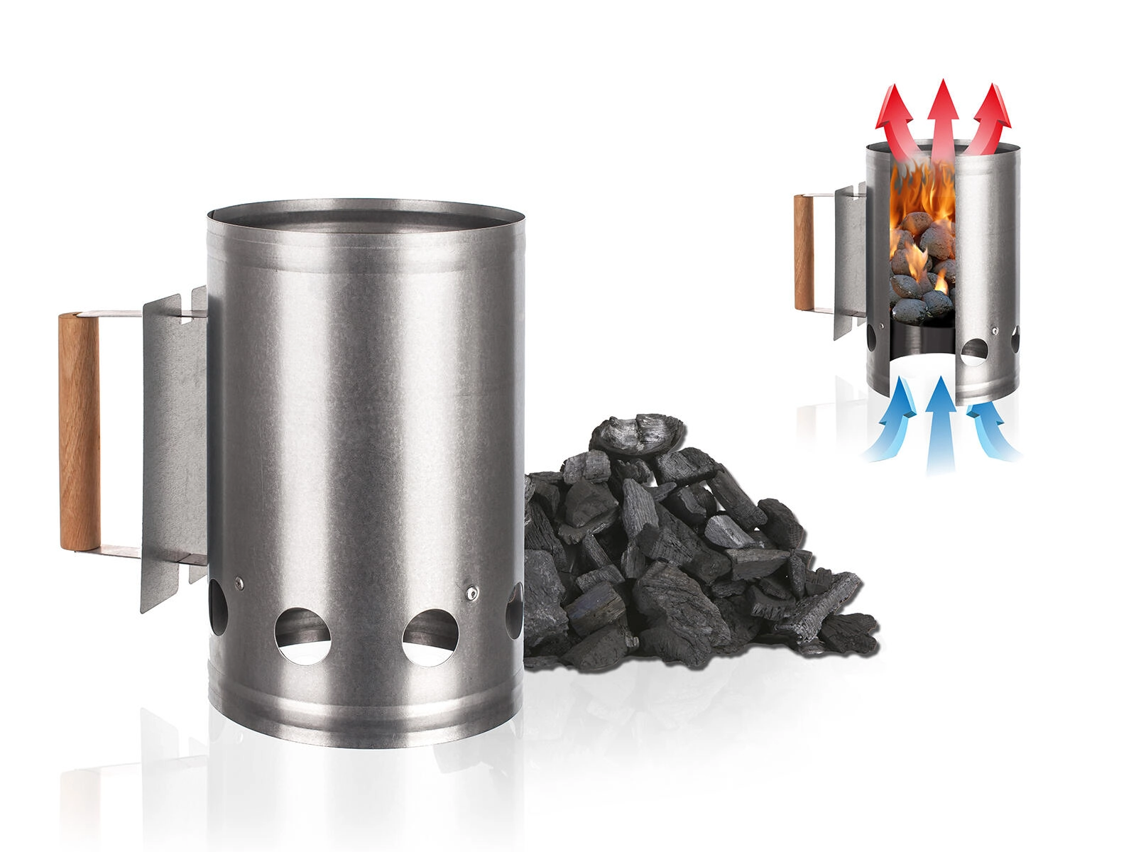 Fini les longues attentes pour obtenir des braises. Cet allume-charbon galvanisé de 16,5 cm de diamètre et 28 cm de hauteur exploite l’effet de cheminée pour enflammer et chauffer rapidement le charbon et les briquettes. Grâce aux orifices d’aération étudiés, l’air circule uniformément, ce qui accélère l’allumage et réduit la consommation d’allume-feu.