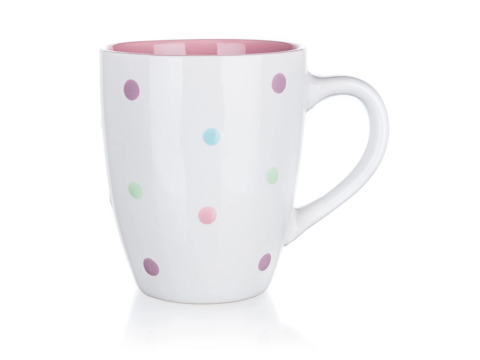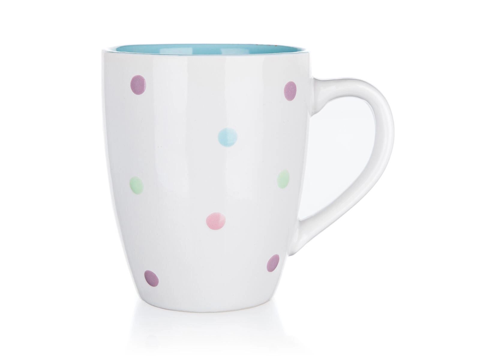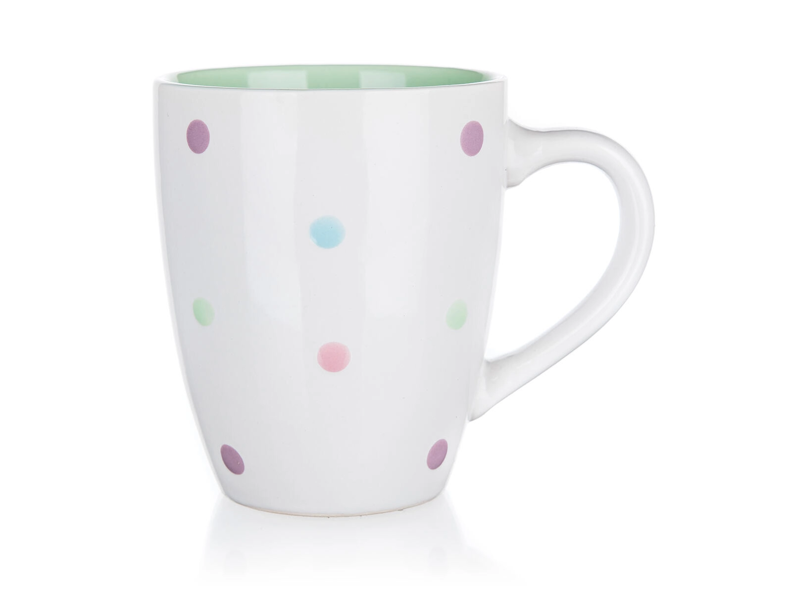 Découvrez le mug polyvalent Punto de 370 ml, qui allie praticité et look moderne. Sa fabrication en céramique avec une glaçure de qualité assure une sensation agréable à la dégustation et un entretien simple. Les pois pastel sur fond blanc et l’intérieur coloré créent une combinaison à la fois ludique et élégante.