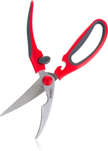 La poignée ergonomique en plastique rouge tient parfaitement en main et offre de l’assurance même lors d’un travail prolongé en cuisine. Ces ciseaux sont idéaux pour les cuisiniers à domicile qui souhaitent garder un contrôle total sur la découpe et obtenir un résultat propre.