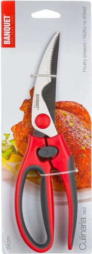 Pratiques, les ciseaux à volaille Culinaria de 24 cm disposent d’une lame courbe pour une découpe facile et des coupes précises. L’acier résistant et la poignée ergonomique en plastique de couleur rouge assurent une prise en main ferme et une utilisation sûre lors de la préparation du poulet, du canard ou de la dinde.