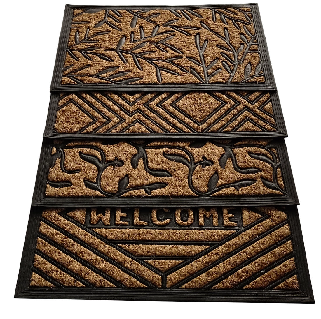 Le format 40 × 60 cm convient à la plupart des entrées, terrasses et balcons. Le paillasson est disponible en mix de décors – des motifs feuillus aux motifs géométriques et « WELCOME » – ce qui lui permet de s’intégrer facilement à différents styles d’extérieurs.