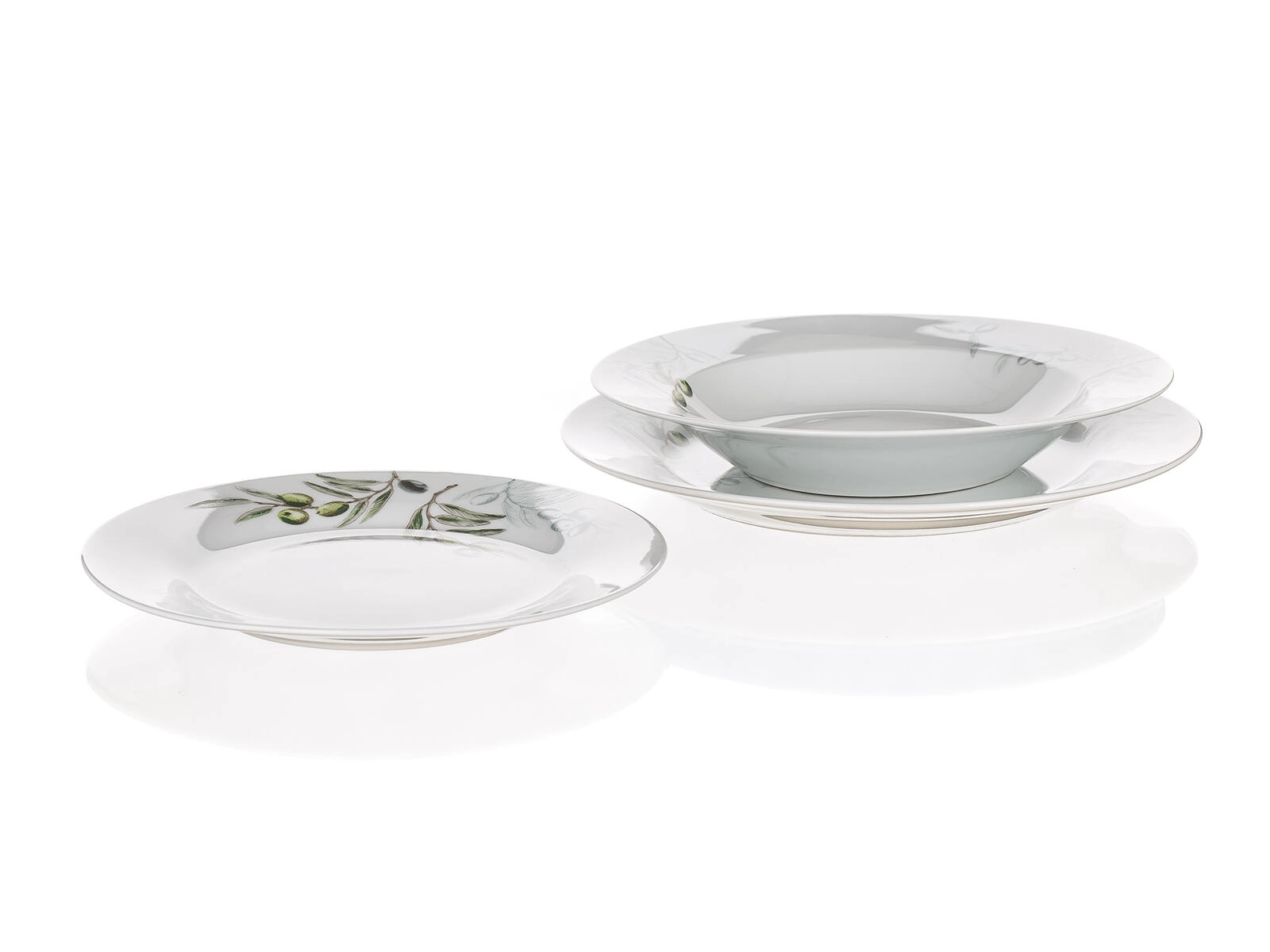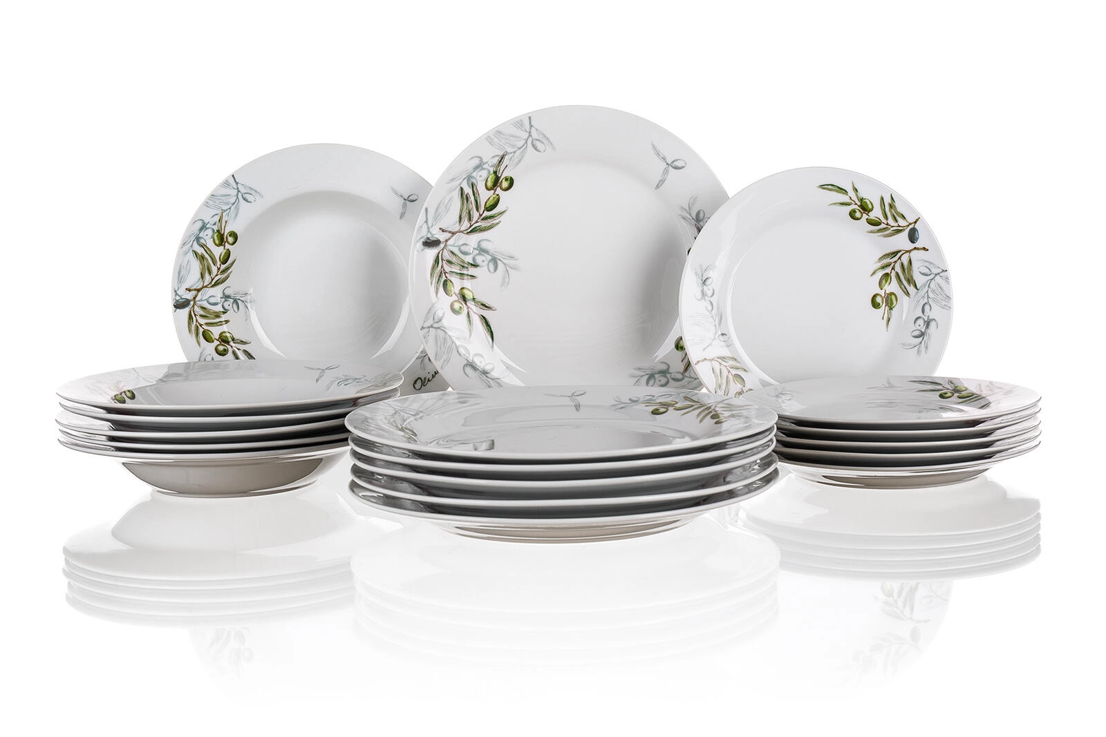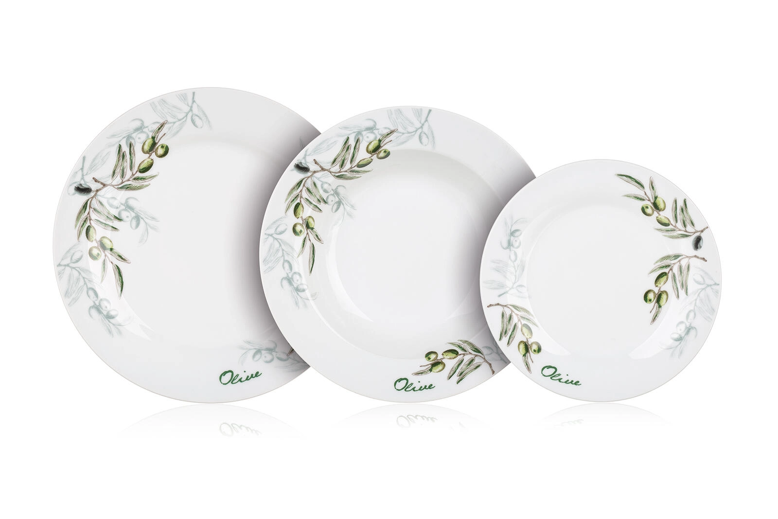 Découvrez l’alliance intemporelle de praticité et de style. Le service Olives en porcelaine blanche, orné d’un motif décoratif d’olives, se distingue par sa glaçure brillante, son poids agréable et sa résistance pour un usage quotidien. Grâce aux dimensions universelles des assiettes, vous composez un service complet pour les repas familiaux comme pour les dîners de fête.