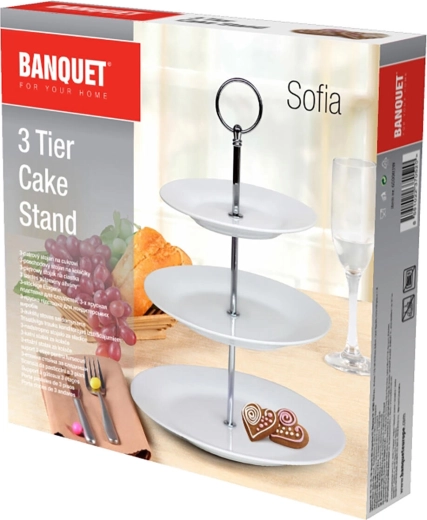 Ce plateau rond à trois niveaux Sofia apportera une touche d’élégance à votre table. Les assiettes en porcelaine d’un blanc pur se distinguent aussi bien dans un intérieur moderne que classique et mettent magnifiquement en valeur les gourmandises servies. Parfait pour les biscuits, macarons, pâtisseries et fruits.