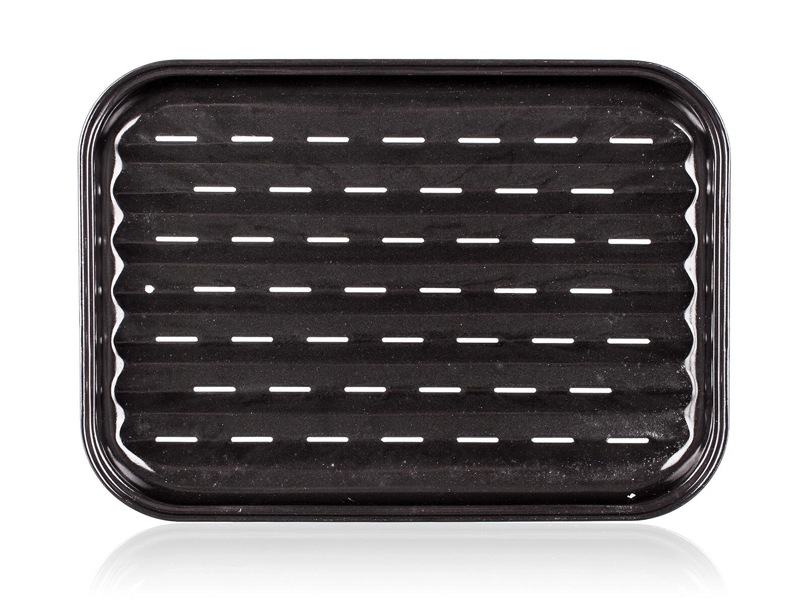 Pratique plaque de gril émaillée de 35 × 24 cm, dans une élégante couleur noire, idéale pour préparer des plats riches et juteux. Elle capte efficacement les jus et réduit les flambées causées par la graisse qui s’écoule, garantissant ainsi un gril et une cuisson plus propres et plus sûrs.