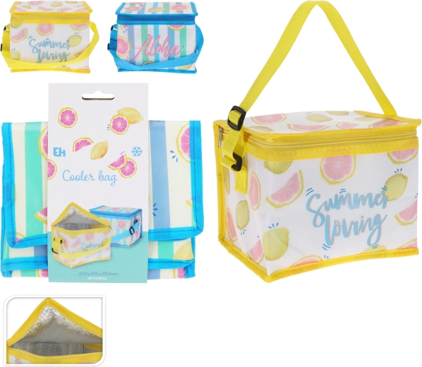 Pratique, le sac isotherme de 4 l garde vos boissons et encas agréablement au frais lors de vos sorties, vacances et déplacements. Grâce à une isolation intérieure de qualité, il assure une température stable et reste léger, compact et facile à transporter. Proposé en assortiment de couleurs et de motifs – jaune SUMMER ou bleu ALOHA.