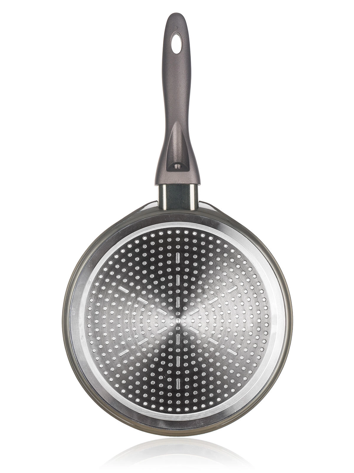 Poêle à crêpes METALLIC PLATINUM légère et résistante, diamètre 24 cm, avec revêtement hautement antiadhésif, fond entièrement inductif et poignée ergonomique soft-touch. Grâce à la répartition rapide et uniforme de la chaleur, vous préparez crêpes, pancakes ou tortillas facilement et sans accrocher.