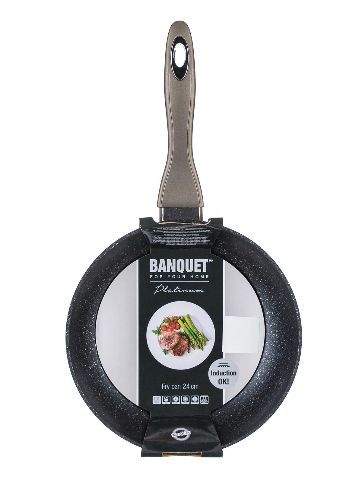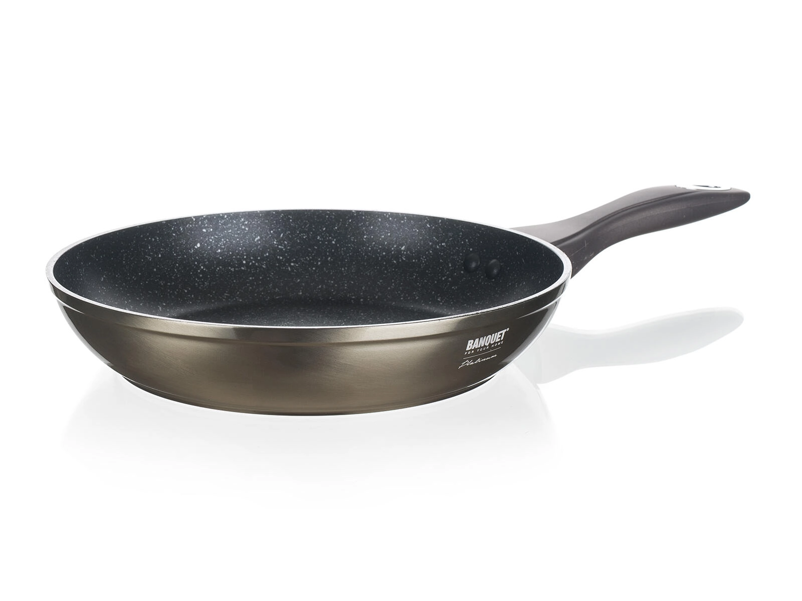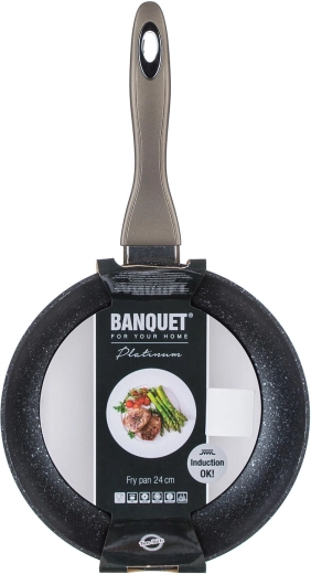 La poêle BANQUET Metallic Platinum (24 cm) est fabriquée en aluminium forgé coulé, qui se distingue par une excellente conductivité thermique et une résistance aux chocs et à la déformation. Son revêtement antiadhésif, dur et résistant aux rayures permet de cuisiner avec un minimum de graisse et assure un démoulage facile des aliments. La finition extérieure carbone-métallique apporte un look moderne et une grande durabilité.