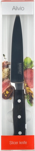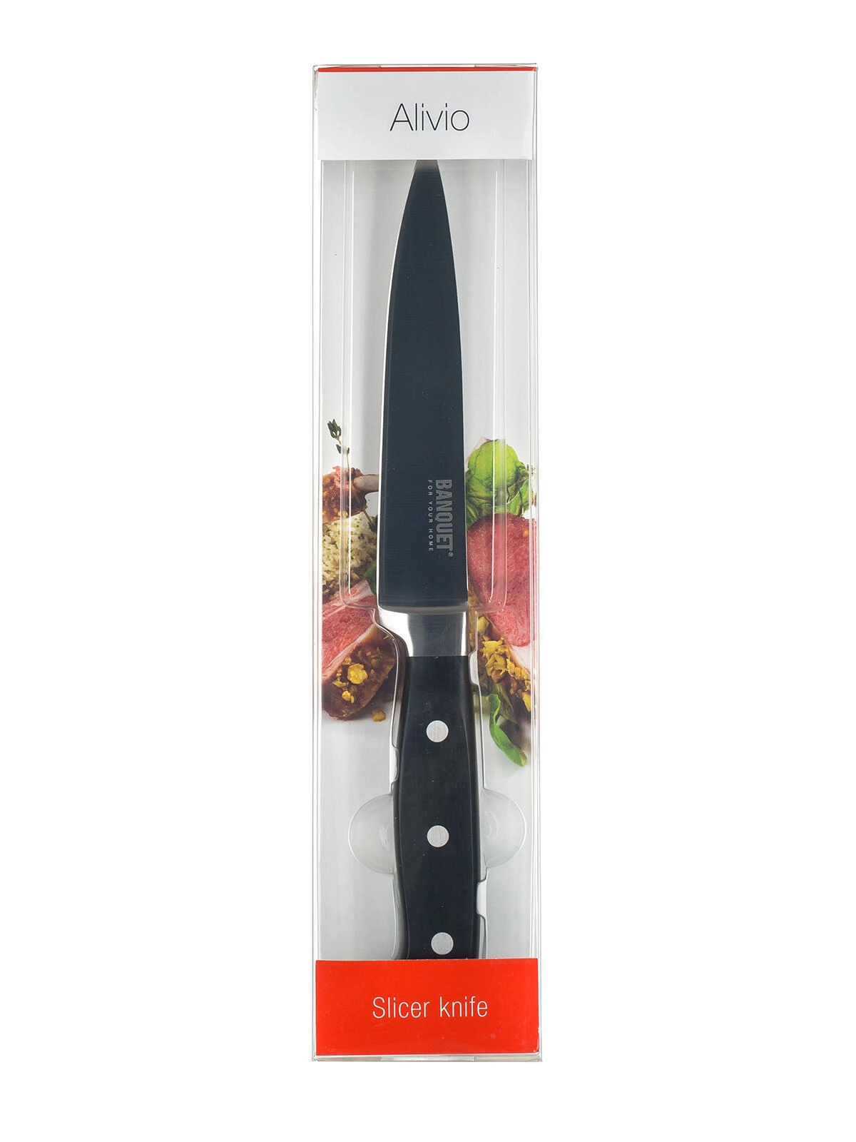 Pratique, le couteau à trancher ALIVIO d’une longueur totale de 28,5 cm avec une lame de 15 cm est idéal pour un tranchage précis de la viande, des fromages et des légumes. Sa conception en acier inoxydable garantit une longue durée de vie, une coupure nette et propre et un usage quotidien confortable dans toute cuisine.