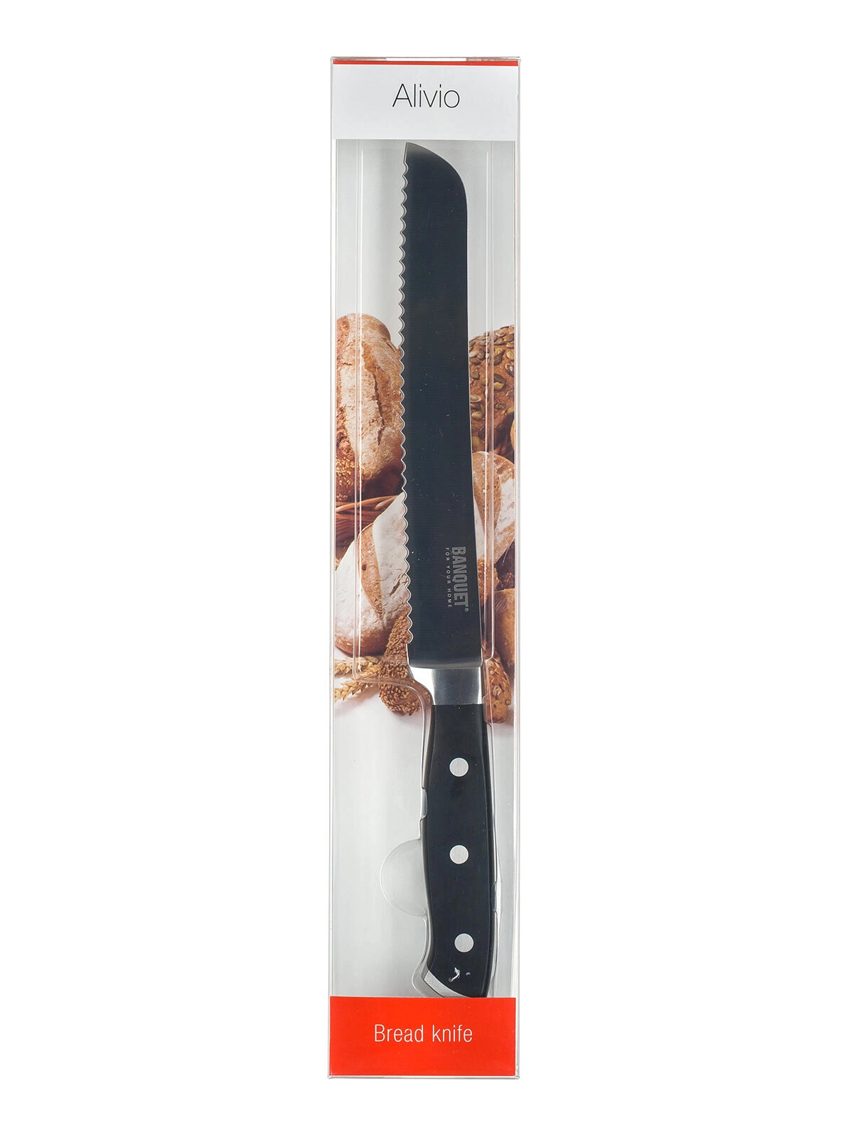 Le couteau à pain ALIVIO, d’une longueur de 33,5 cm avec une lame de 20 cm en acier inoxydable de haute qualité, est idéal pour un usage quotidien. Grâce à son tranchant dentelé, il tranche facilement la croûte croustillante comme la mie moelleuse, pour des tranches nettes et régulières. Acier inoxydable résistant, tranchant dentelé pour les produits de boulangerie et coupe confortable sans écraser font de ce couteau un allié fiable dans toute cuisine.