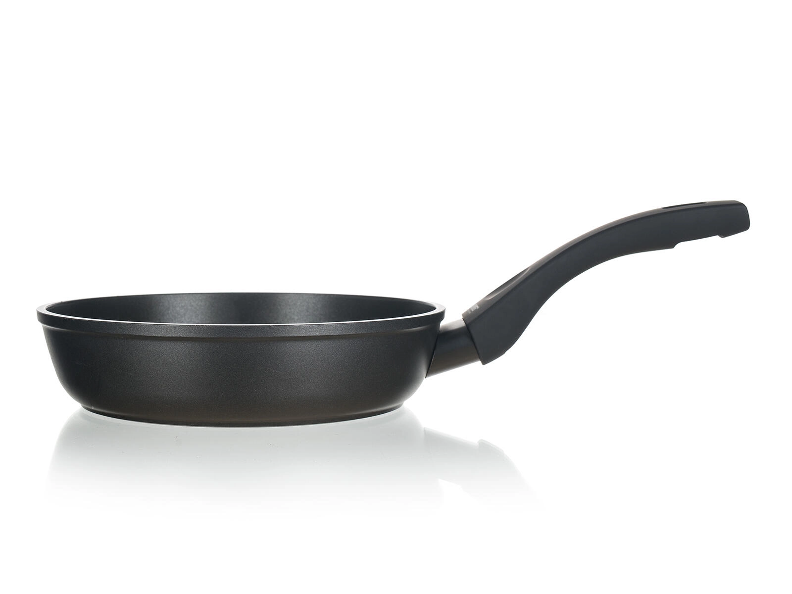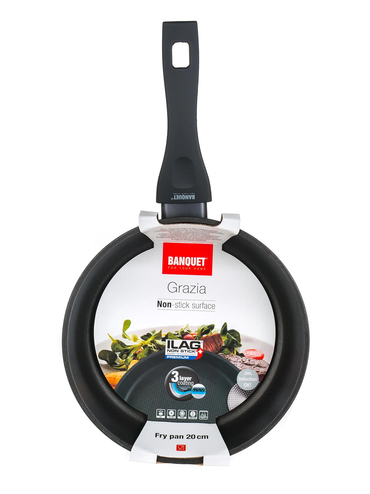 La poêle GRAZIA de 20 cm de diamètre est idéale pour la préparation quotidienne des œufs, crêpes, légumes ou petites portions de viande. Grâce au revêtement antiadhésif ILAG PREMIUM à 3 couches, les ingrédients n’attachent pas et la poêle se nettoie facilement. Le corps en aluminium forgé garantit une diffusion de chaleur rapide et uniforme, tandis que le revêtement extérieur bicolore résistant à la chaleur ajoute de la durabilité et un aspect noir mat élégant.