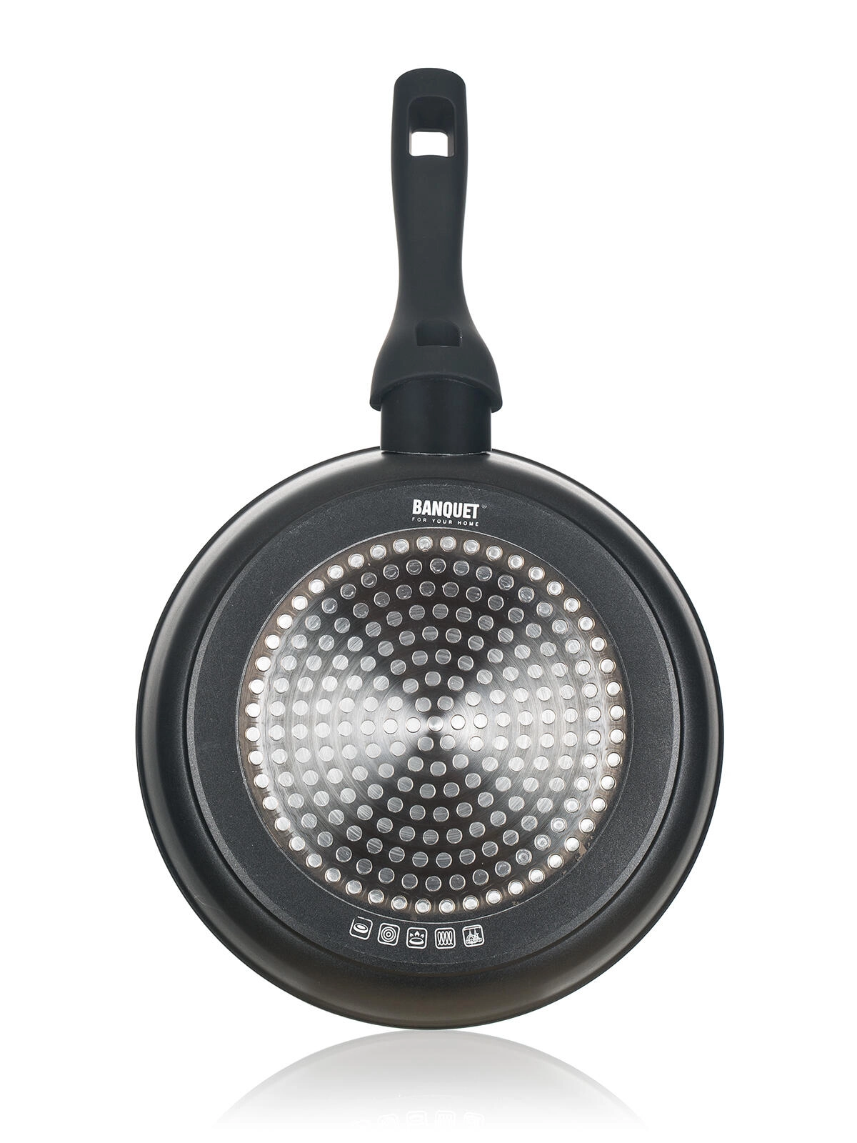 Le fond induction avec pictogramme gravé au laser permet une utilisation sur tous les types de tables de cuisson, y compris l’induction. La poignée ergonomique tient confortablement en main et améliore la sécurité ainsi que le contrôle lors de la cuisson et du sauté.