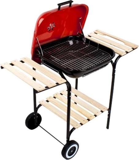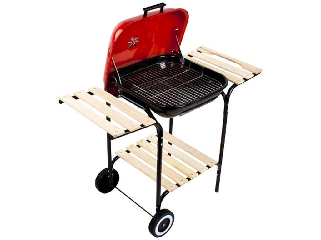 Le brasero à revêtement émaillé résiste à la chaleur et se nettoie facilement, tandis que le couvercle rouge thermolaqué apporte du style et protège des intempéries. Les étagères de rangement en bois offrent suffisamment d’espace pour les ustensiles et les ingrédients, et grâce aux roues de transport, vous déplacez aisément le barbecue là où vous en avez besoin.