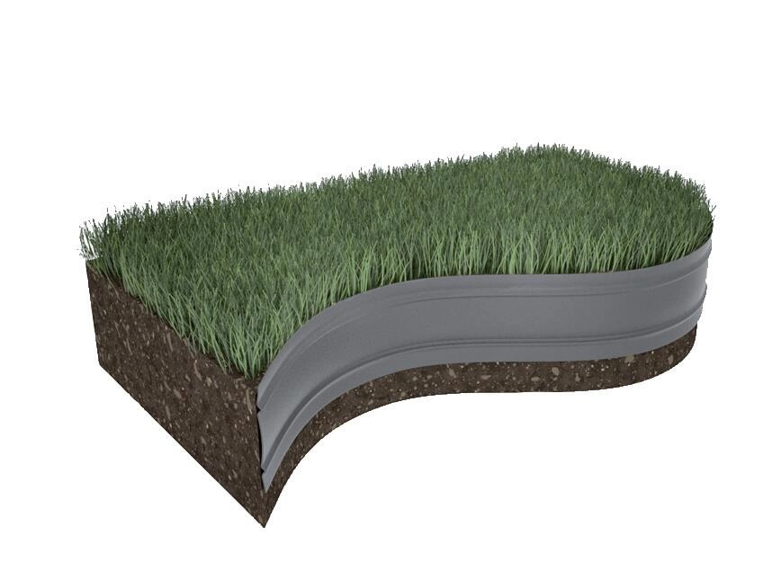 Le profil souple s’adapte facilement aux courbes comme aux lignes droites. En coupe, il sépare clairement la pelouse du sol ou du gravier et aide à maintenir des bords propres sans matériau répandu.