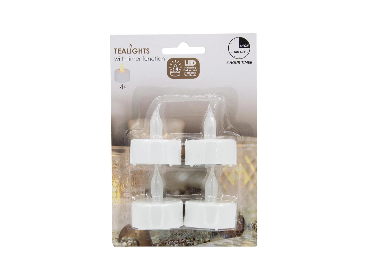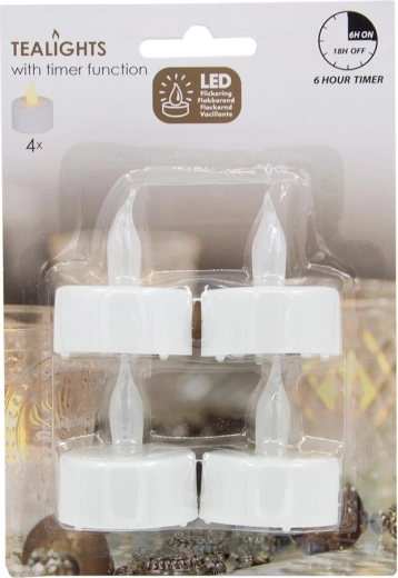 Set de bougies LED chauffe-plat avec minuterie, blanc, diamètre 3,5 cm (lot de 4)