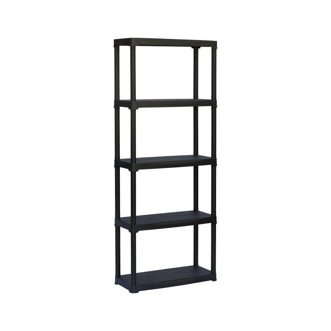 Étagère universelle en plastique avec cinq niveaux pour un rangement clair des outils, des provisions et des articles ménagers. Offre un montage simple sans outils, un entretien facile et un matériau en polypropylène résistant adapté au garage, à la cave, à l’atelier comme à l’appartement. Chaque étagère supporte jusqu’à 20 kg.