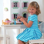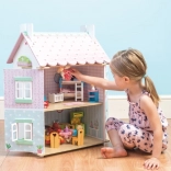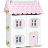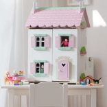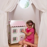 La maison de poupées Sweetheart Cottage séduit par ses détails – motifs de cœurs et de fleurs, tons pastels et agencement réfléchi des pièces. La façade s’ouvre entièrement pour un accès aisé à toutes les pièces, et en soulevant une partie du toit, on découvre un grenier douillet.