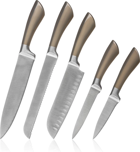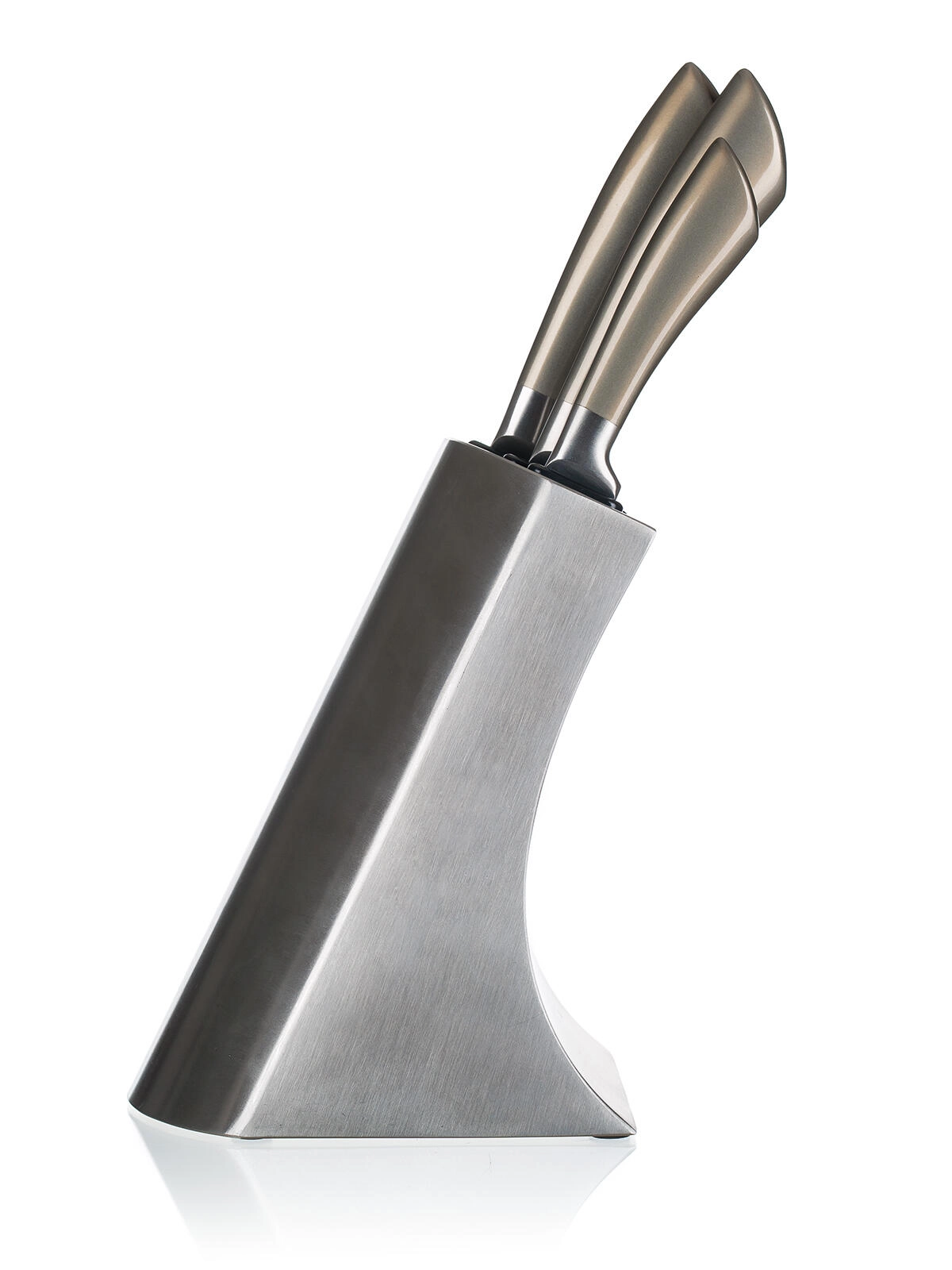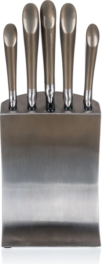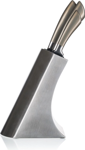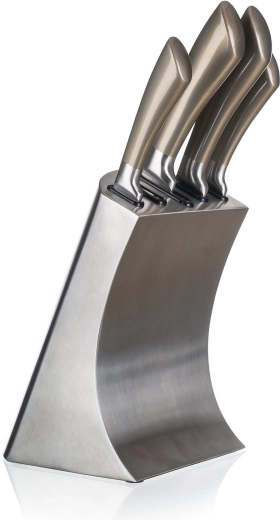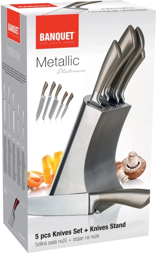 Le set METALLIC Platinum allie look moderne et fonctionnalité. Les couteaux en acier inoxydable offrent une netteté fiable et un entretien facile, tandis que le support métallique stable garde les lames en sécurité et à portée de main. Parfait pour toute cuisine où performance et design comptent.