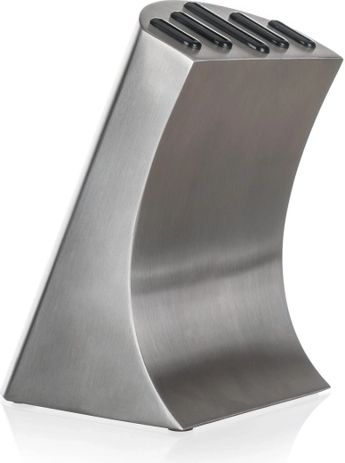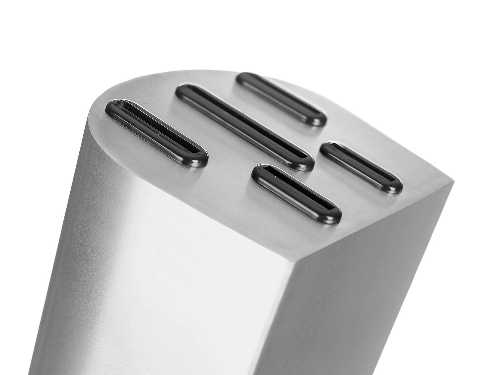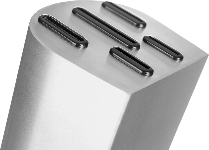 Le bloc métallique élégant avec base antidérapante organise tous les couteaux, protège leurs lames et assure un accès rapide pendant la cuisson.
