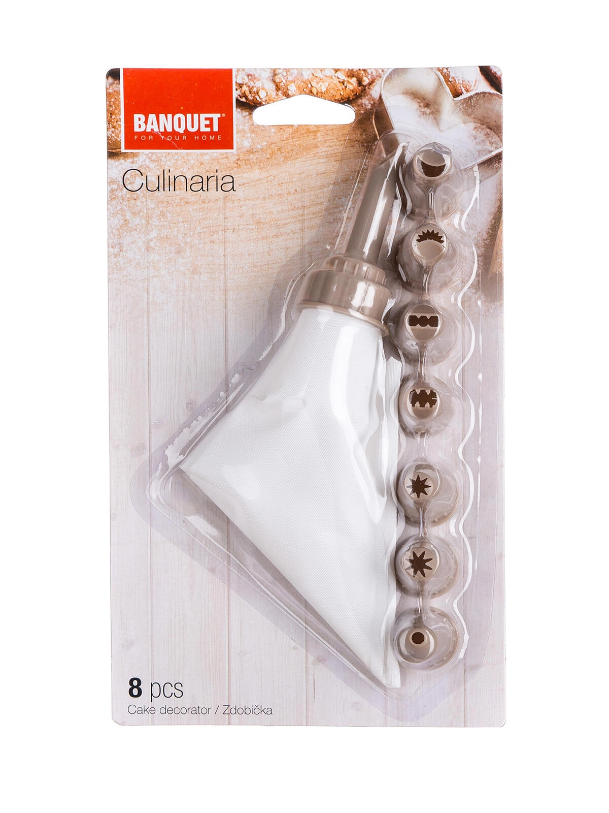 Découvrez le plaisir de la décoration avec la poche à douille universelle CULINARIA, qui grâce à 8 buses différentes crée des lignes élégantes, des étoiles, des fleurs et des perles. Idéale pour les crèmes, la chantilly ou les garnitures – vous sublimez facilement l’apparence et le goût de vos desserts.
