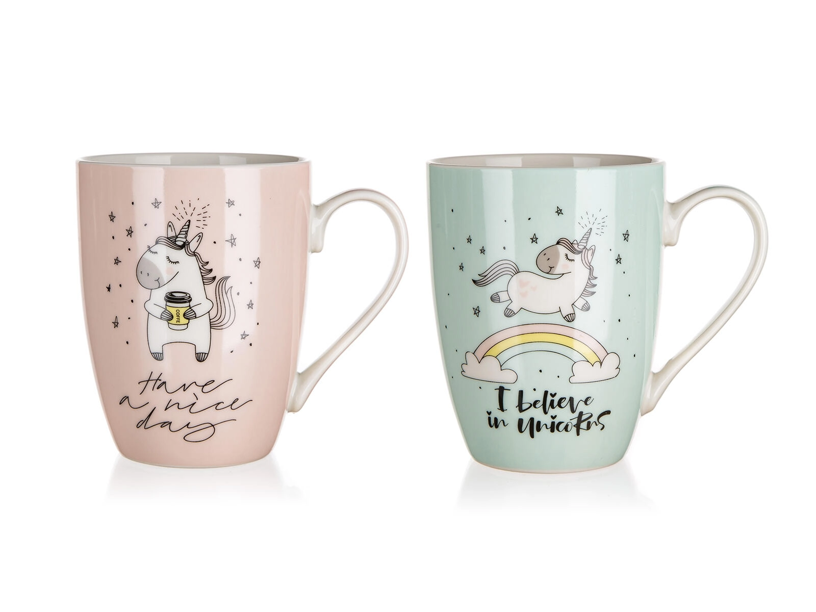 Deux motifs ludiques avec licorne et messages positifs égayent le matin comme la pause au travail. Idéal comme joli cadeau pour enfants et adultes.