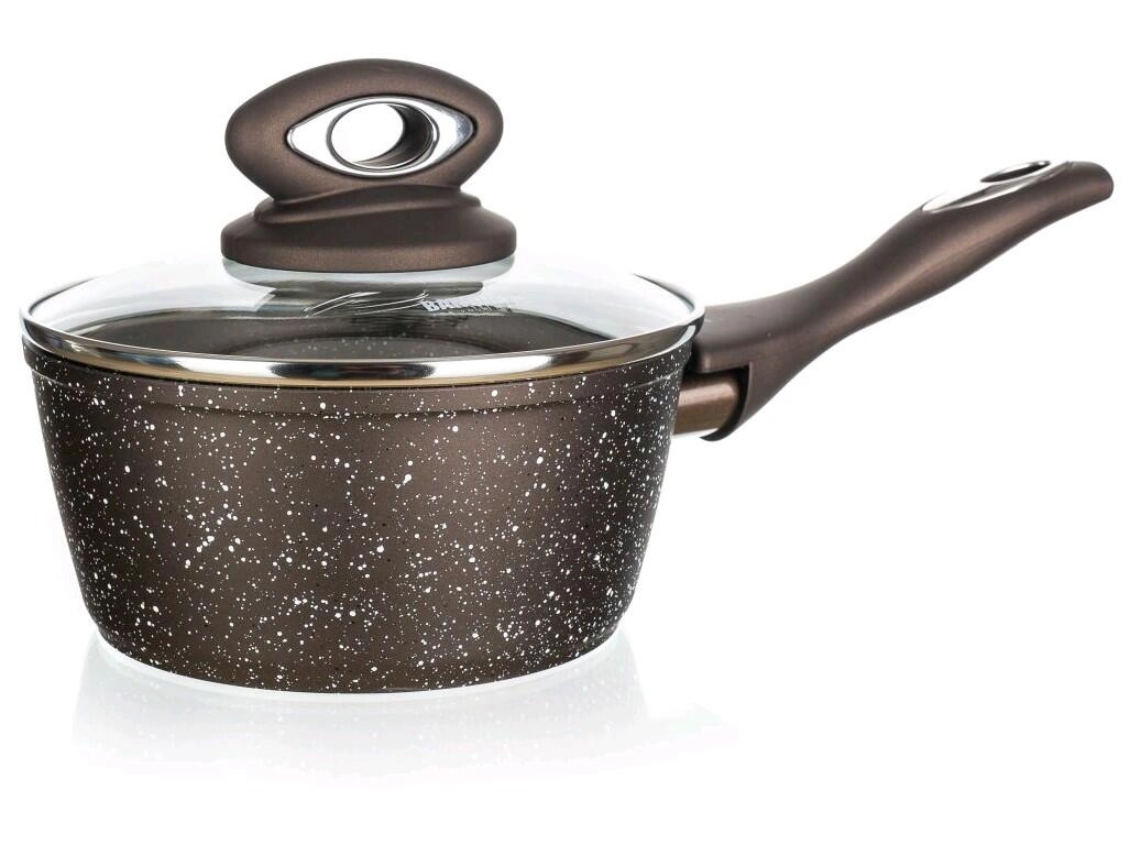 Élégante casserole en aluminium coulé de 16 cm de diamètre et 1,25 l de volume, dotée d’un revêtement antiadhésif dur, d’un fond entièrement inductif et d’une poignée soft touch antidérapante. Le couvercle en verre et la construction robuste assurent une cuisson confortable sans attacher et une longue durée de vie.