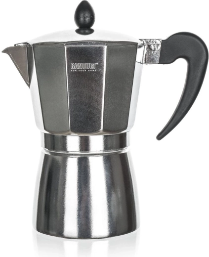 Cafetière moka traditionnelle pour la préparation à domicile d’un café corsé et aromatique. Le corps en aluminium conduit rapidement la chaleur et acquiert avec le temps une patine pour une saveur plus riche. Compatible avec les plaques à gaz, électriques et vitrocéramiques et équipée d’une valve de sécurité.