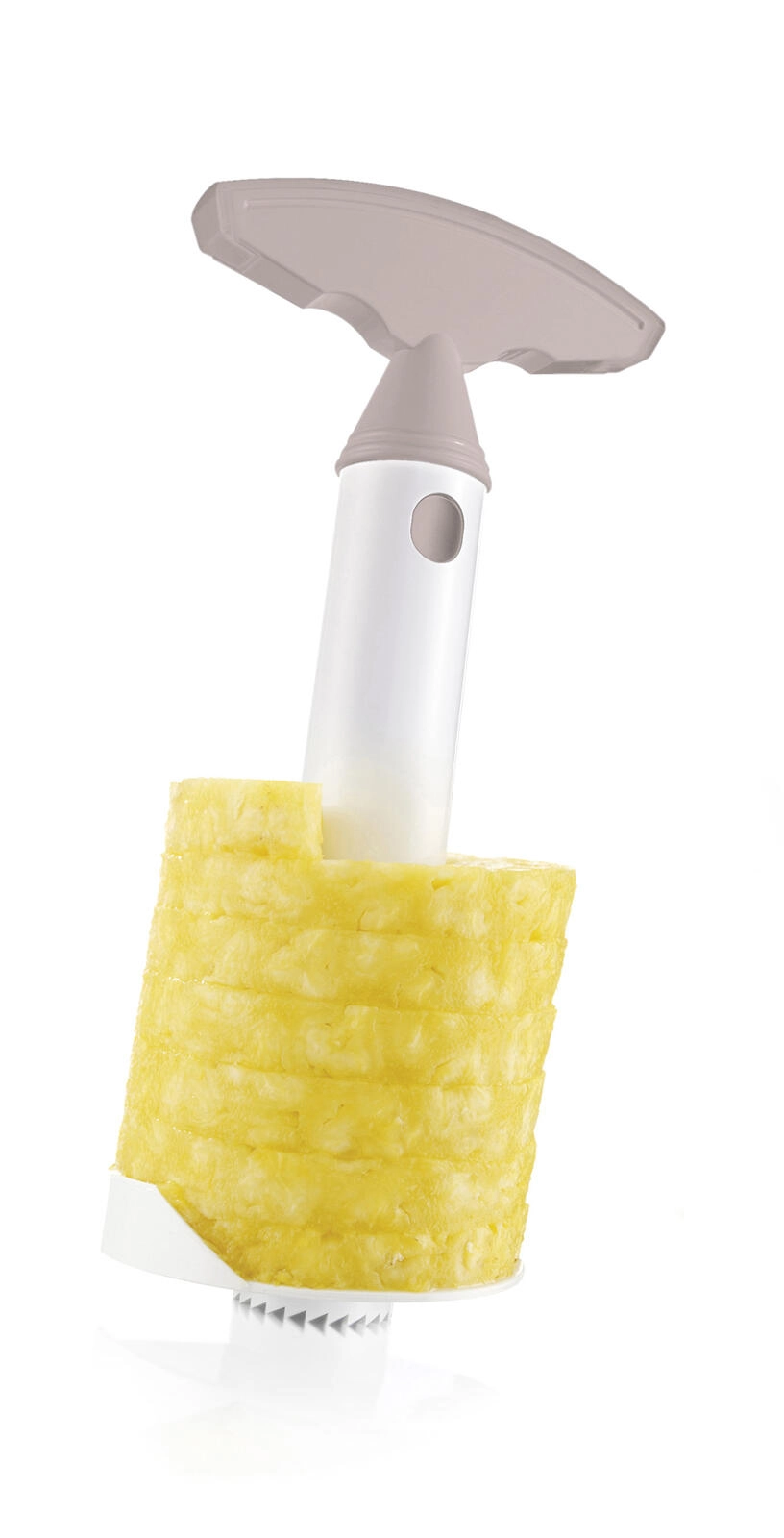 Simplifiez la préparation de l’ananas frais avec l’outil pratique Culinaria Latte, qui crée en un instant de minces tranches spiralées régulières, retire le cœur dur et préserve l’écorce intacte pour un service facile. La poignée ergonomique assure une rotation confortable et le plastique résistant est compatible lave-vaisselle.