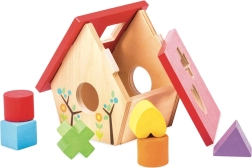 Adorable boîte à formes en bois en forme de nichoir de Le Toy Van, parfaite pour les enfants qui apprennent à reconnaître les formes et les couleurs. Elle comprend 6 formes en bois de couleurs différentes à insérer dans les ouvertures correspondantes, favorisant le développement de la dextérité et de la coordination œil-main.