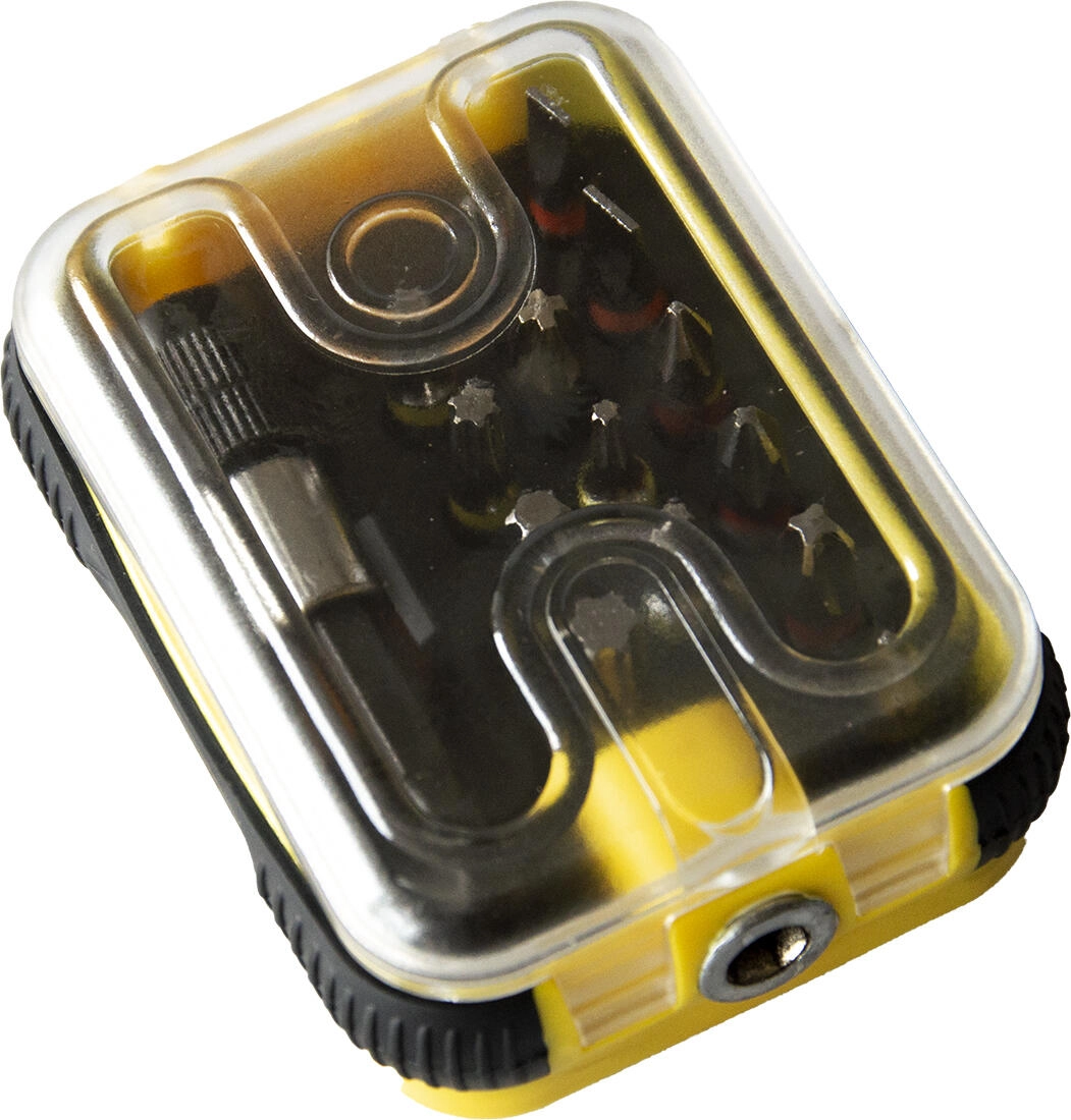 Le pratique jeu d’embouts M.A.T. comprend 15 pièces en acier de qualité S2 avec anneau coloré pour une identification rapide et un porte-embout magnétique. Grâce à une large gamme de profils (fente, PH, PZ, Torx) et à un traitement de surface bruni, il est idéal pour l’atelier domestique comme pour un usage professionnel.
