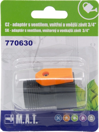 Adaptateur universel avec vanne pour un raccordement rapide et sécurisé des tuyaux d’arrosage, des robinets et des systèmes d’irrigation. Grâce à la combinaison du filetage intérieur et extérieur 3/4", il couvre un large éventail d’utilisations au jardin et autour de la maison. La vanne d’arrêt intégrée permet de régler aisément le débit d’eau ou de l’arrêter complètement sans devoir déconnecter les éléments.