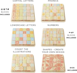 Ce set LE TOY VAN Petilou est un jouet éducatif idéal pour les enfants à partir de 12 mois. Chaque cube est unique, imprimé manuellement en sérigraphie et présente sur ses différentes faces des lettres, chiffres, formes, animaux et symboles. Grâce au bois d’hévéa robuste et aux peintures à base d’eau, les cubes sont durables, sûrs et agréables au toucher.