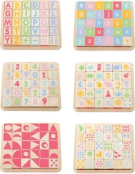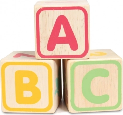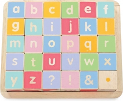 Les bords arrondis des cubes et de la base de rangement assurent une manipulation confortable et sécurisée. Le jouet est sans plastique, fabriqué en bois certifié FSC avec un accent sur la production éthique et la durabilité. Le set soutient le développement des compétences cognitives, de la représentation spatiale et des capacités linguistiques.