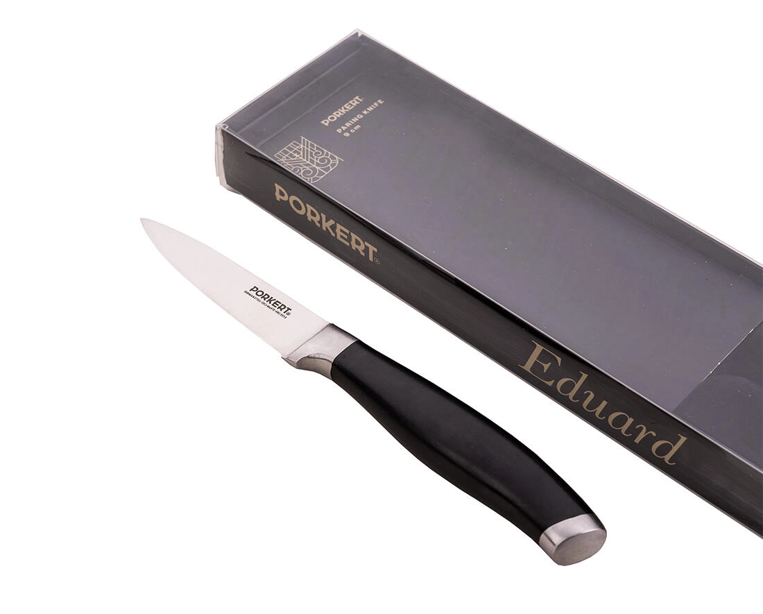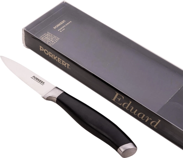 Le couteau d’office EDUARD avec une lame de 9 cm est un excellent assistant pour les petits travaux en cuisine. Grâce à l’acier inoxydable de qualité X50CrMoV15 (ISO 1.4116), la lame conserve son tranchant durablement et offre une coupe nette et précise. Le manche ergonomique en plastique poli résistant assure une prise en main confortable et sûre.