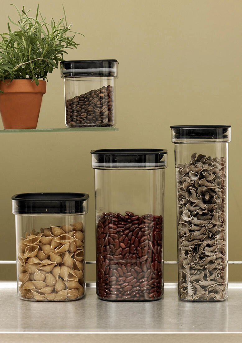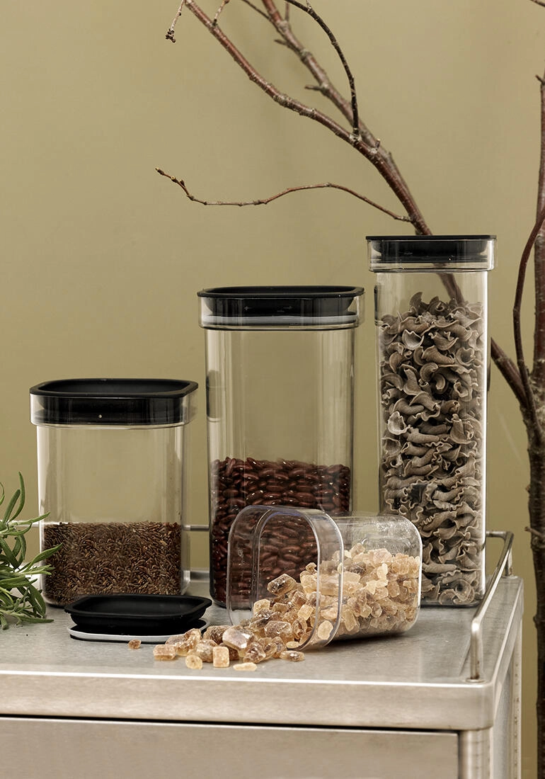 La forme carrée et le couvercle plat permettent d’empiler plusieurs boîtes en toute sécurité pour un garde-manger clair et compact.