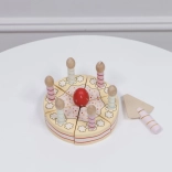 Gâteau au design crème attrayant avec un cœur à la fraise, facile à « couper » en six parts puis à reconstituer grâce au scratch. Les enfants apprécieront souffler les bougies, servir les parts et partager avec les amis – idéal pour le jeu d’imitation et les premières aventures en cuisine.