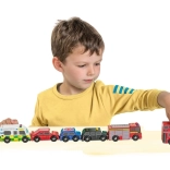 Le coffret s’intègre facilement aux garages et circuits de trains en bois Le Toy Van et d’autres marques. Les enfants peuvent ainsi construire leur propre ville pleine d’action et d’amusement.
