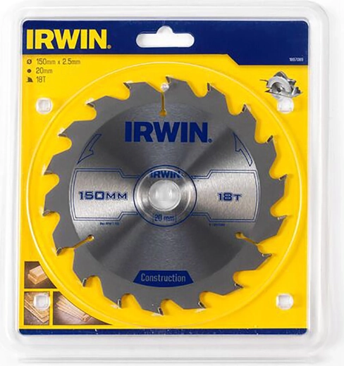 Lame de scie universelle IRWIN de diamètre 150 mm avec affûtage alterné ATB et 18 dents pour des coupes rapides et nettes dans le bois, panneaux de particules et contreplaqué. Offre une coupe fine de 2,5 mm pour une moindre résistance, des dents en carbure industriel à longue durée de vie et une surface anticorrosion pour des performances stables. Des ouvertures de dilatation et de refroidissement réduisent l’échauffement et le voilage du disque.