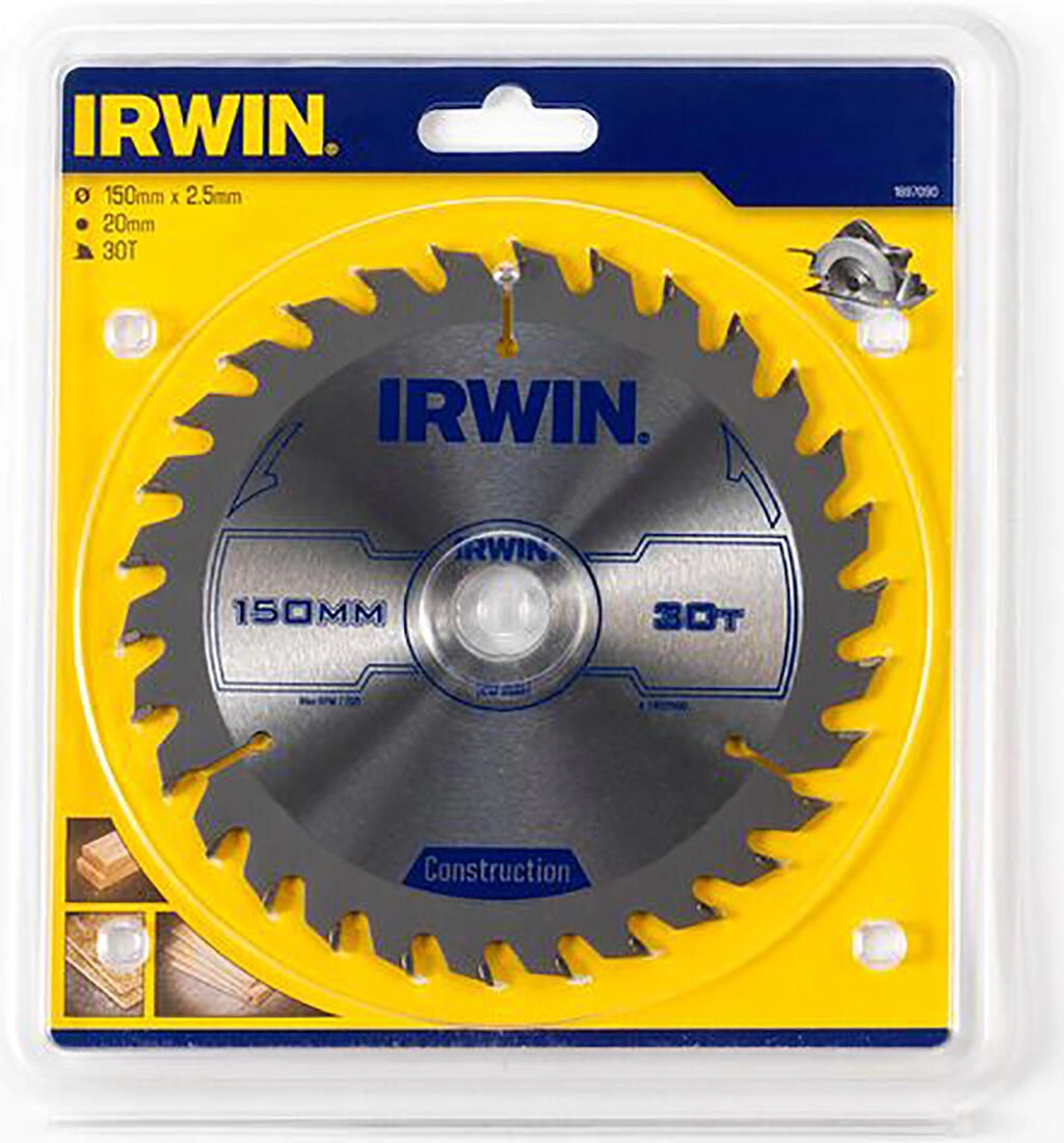 Lame de scie IRWIN de haute qualité, diamètre 150 mm, avec 30 dents et coupe fine de 2,5 mm pour des coupes précises, rapides et nettes dans le bois, l’aggloméré et le contreplaqué. Grâce à l’affûtage alterné ATB et à la denture carbure de qualité industrielle, elle reste affûtée plus longtemps et offre des performances stables. Des ouvertures de refroidissement et de dilatation minimisent les contraintes thermiques et le voilage, tandis que le revêtement anticorrosion prolonge la durée de vie.
