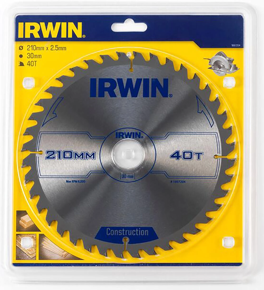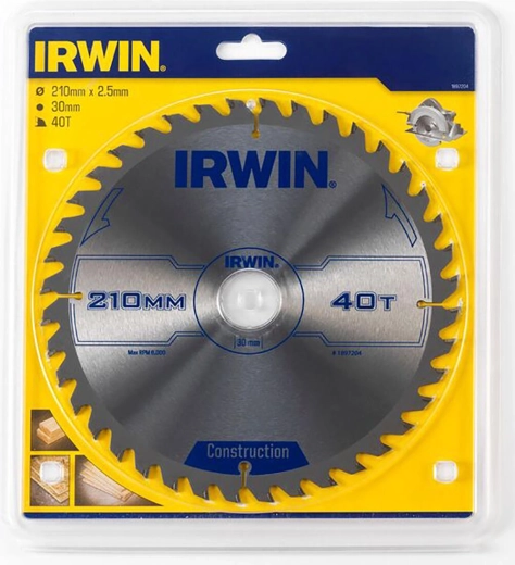 Lame de scie IRWIN performante de diamètre 210 mm avec 40 dents et géométrie ATB, conçue pour des coupes rapides et nettes dans le bois. Grâce à sa coupe fine de 2,5 mm, à ses ouvertures d'évacuation et de dilatation et à son carbure industriel, elle reste affûtée plus longtemps, coupe en douceur et réduit l'échauffement ainsi que le voilage du disque.