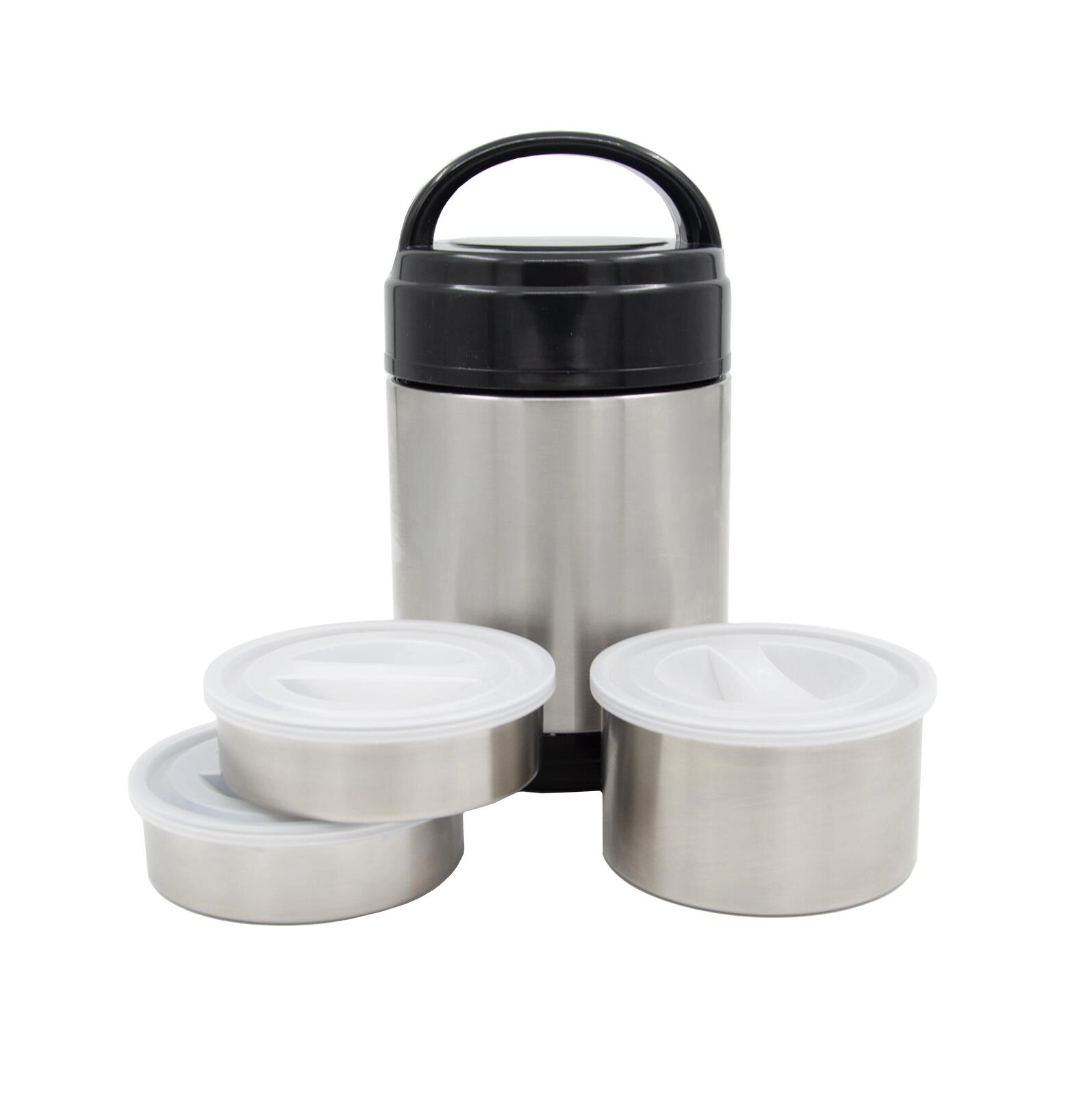 Profitez de vos repas faits maison à tout moment et partout grâce à ce récipient thermique pratique en inox avec housse isotherme. Il maintient les plats chauds ou froids plus longtemps, offre 3 boîtes en inox avec couvercles étanches et dispose d'une poignée confortable pour un transport facile. Grâce à son large goulot, il se remplit et se nettoie aisément, et une fois les bols retirés, il est idéal pour les soups ou de plus grandes portions. Un choix parfait pour le bureau, les trajets, la montagne ainsi que pour un service aisé à l’hôpital ou lors de soins à domicile.