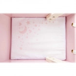 Élégante poussette en bois pour poupées Sweet Dreams de LE TOY VAN dans une teinte rose pastel, séduisante par son look traditionnel et sa finition soignée. Elle offre une structure robuste, un matelas moelleux, un baldaquin rétractable cousu à la main et des roues silencieuses avec revêtement caoutchouté pour une conduite fluide sur tapis comme sur sol dur. Inclut aussi un adorable sac à langer. Fabriquée de manière éthique en bois FSC et peinte avec des peintures non toxiques.