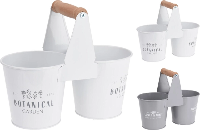 Élégante jardinière double en métal avec poignée pratique, elle illumine l’intérieur, le balcon et le jardin. Proposée avec un mélange de couleurs et de décors, elle s’adapte grâce à ses dimensions compactes aux rebords de fenêtres et aux petites tables. Métal léger, décors raffinés et transport aisé en font l’accessoire idéal pour herbes aromatiques, succulentes ou petites fleurs.