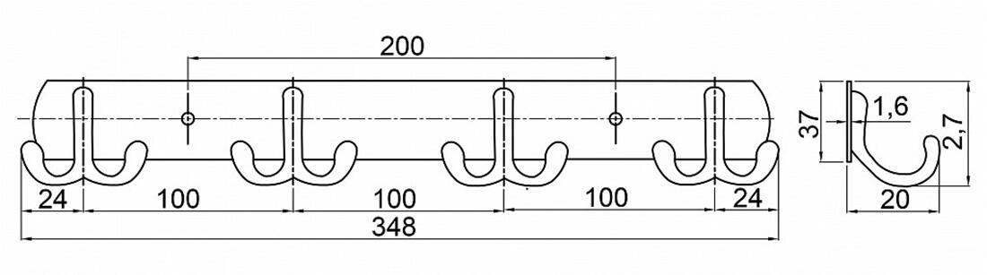 - Porte-manteau mural avec quatre doubles crochets