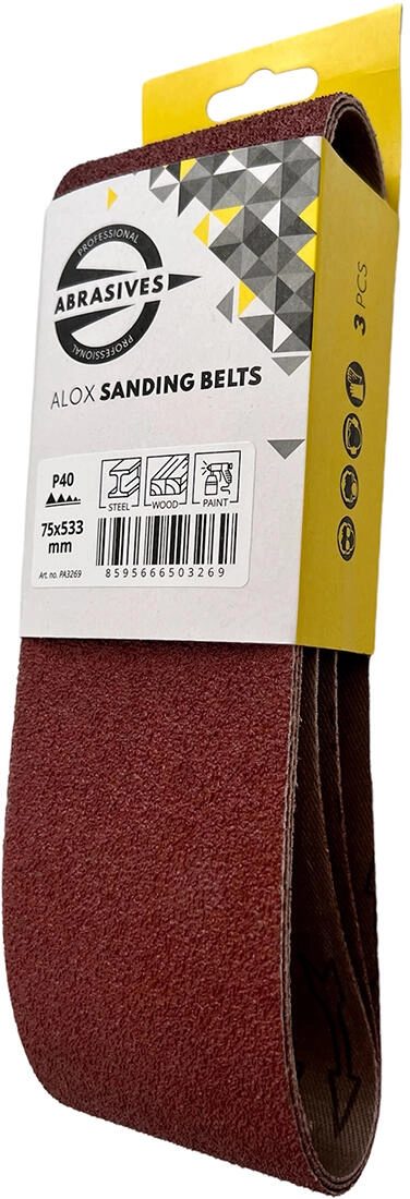 • Dimensions 75 × 533 mm – compatible avec les ponceuses à bande courantes